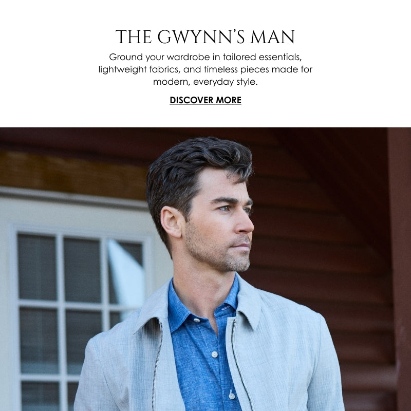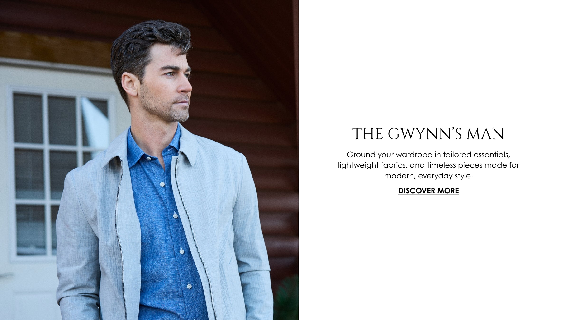 The men’s department at Gwynn’s is known for its sophisticated edit of men’s designer clothing, luxury menswear, tailored suits, sport coats, premium denim, fine knits, shoes, belts, wallets, and accessories. Whether for business, a wedding, or a coastal weekend, we offer timeless style with modern precision for today’s gentleman.