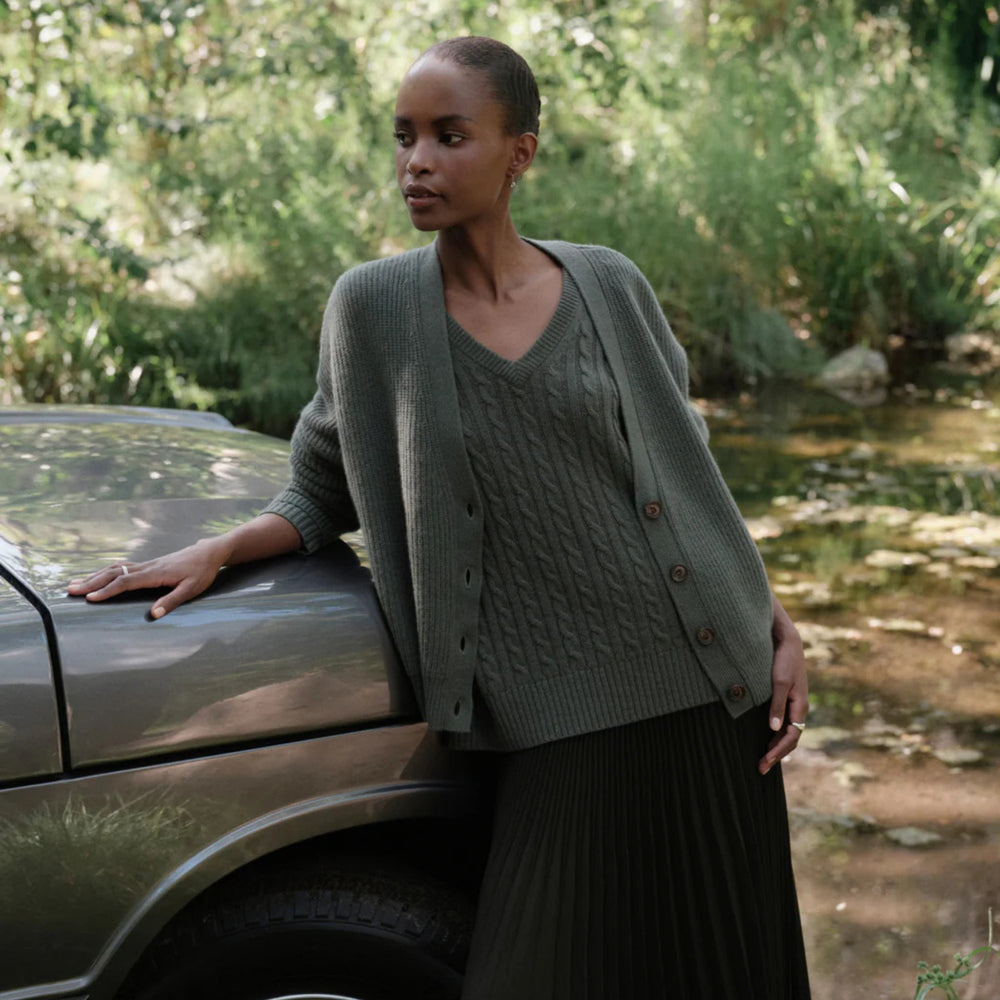 Cropped Cashmere Cocoon Cardigan, Pine
