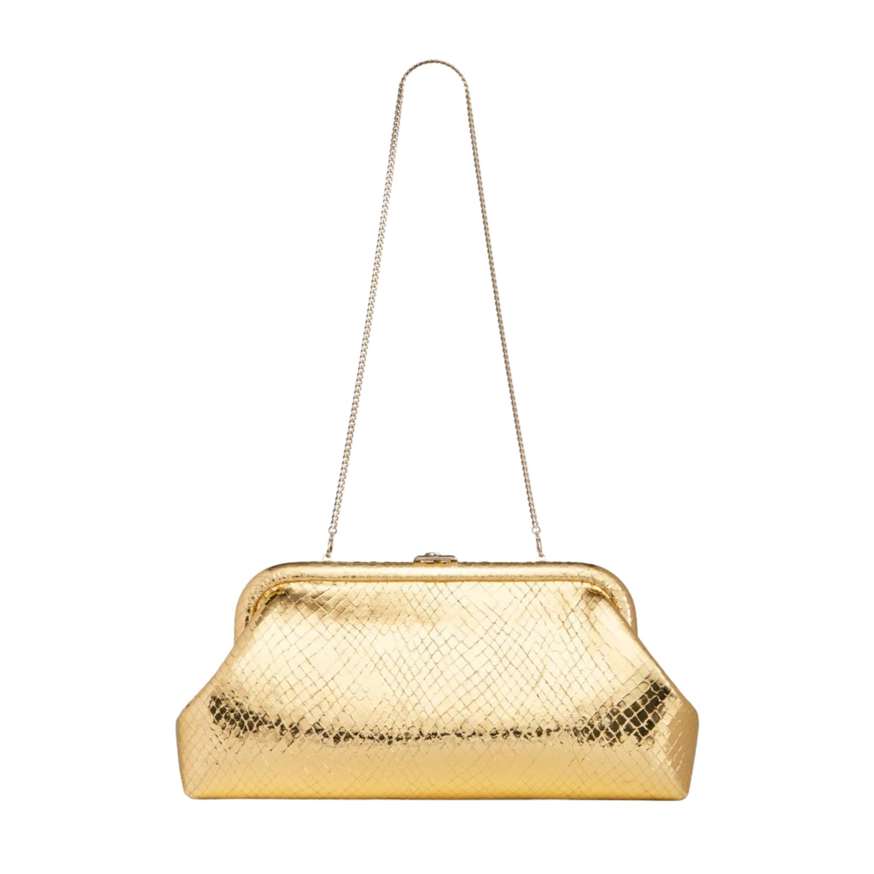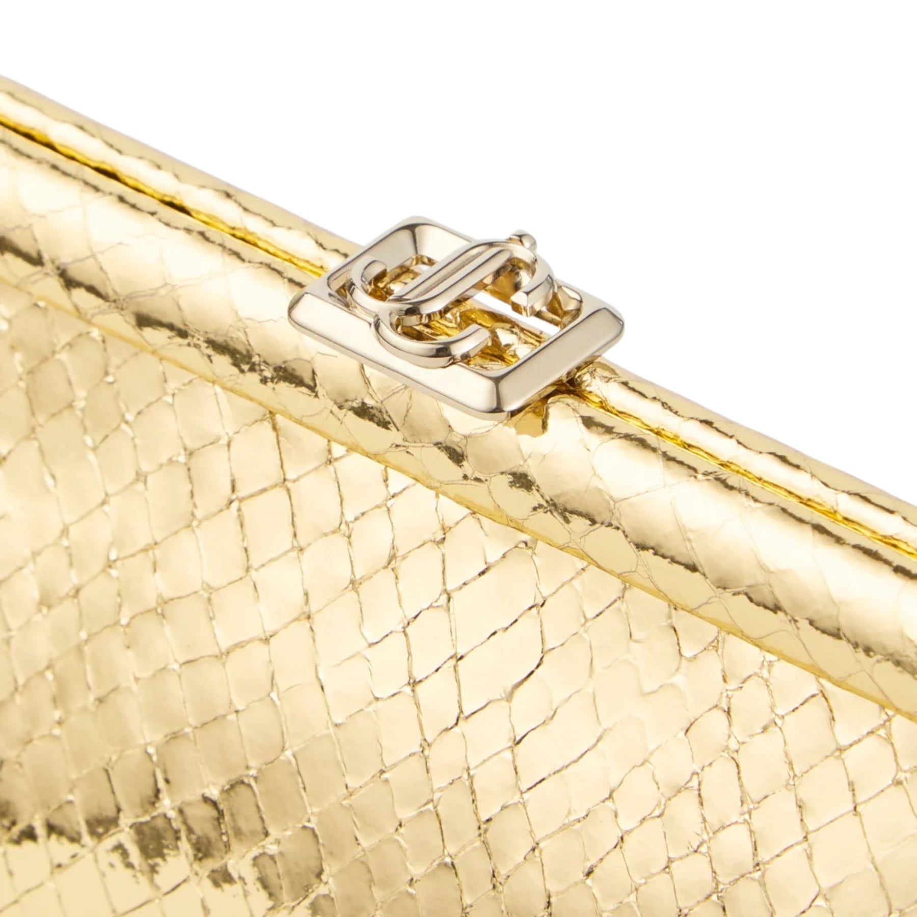 Radiating vintage-inspired glamour, the Skylar evening bag is crafted from high-shine metallic candy wrap nappa leather for a luminous finish. Its sculptural silhouette is elevated by the signature square JC clasp, creating a refined statement piece that effortlessly enhances evening and special-occasion looks.