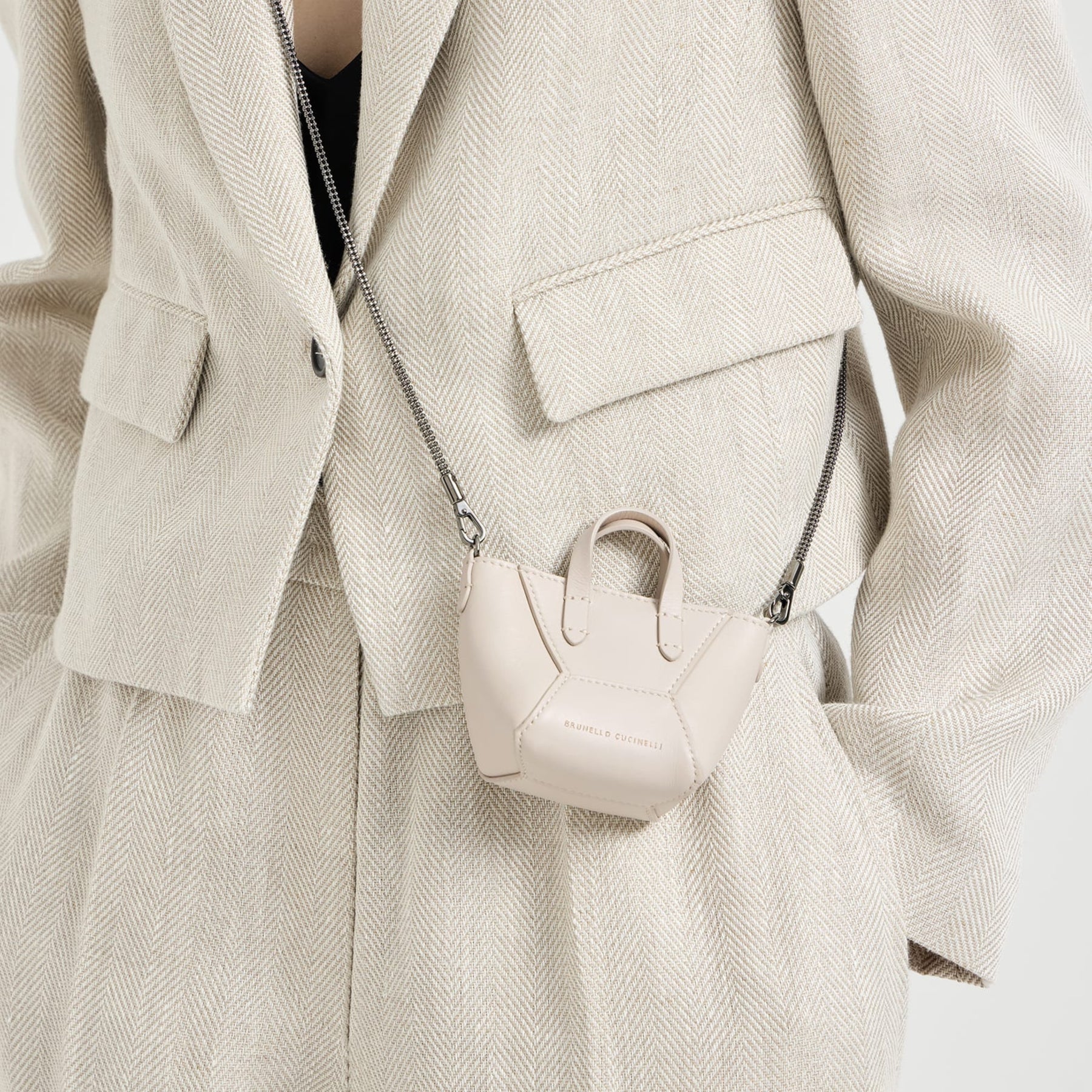 Understated and refined, the Brunello Cucinelli BC Duo Micro Bag brings the brand’s signature elegance to a modern, compact silhouette. Crafted from smooth calfskin leather, the design features delicately paneled construction inspired by the iconic BC Duo stitching. A detachable monili shoulder strap allows the bag to be worn on its own or styled with larger bags for versatile seasonal looks.