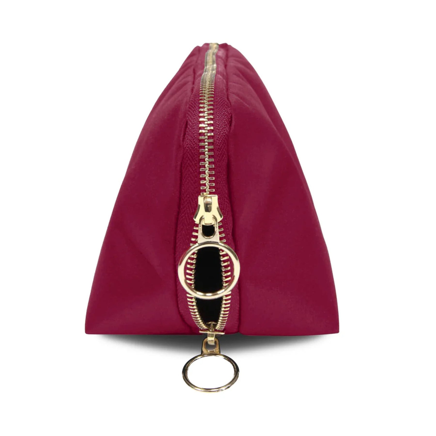 The Vacationer Makeup Bag makes packing for travel feel luxurious and organized. Whether it’s a weekend getaway or an extended trip, this roomy bag keeps your essentials neat and easy to access. The Wine exterior adds sophisticated flair, while the Zebra interior brings a fun, fashionable contrast—making it the perfect mix of functionality and style.
