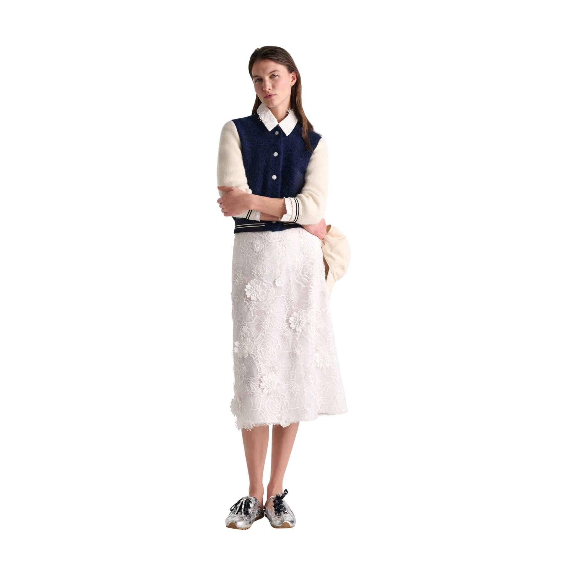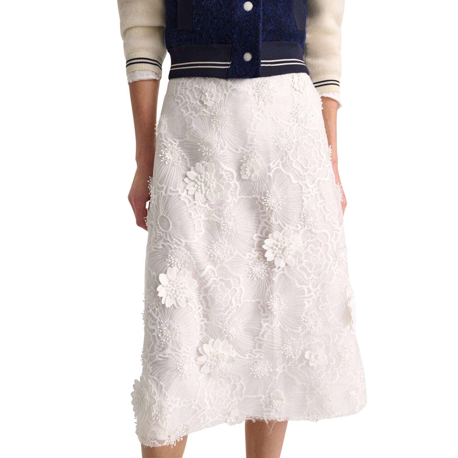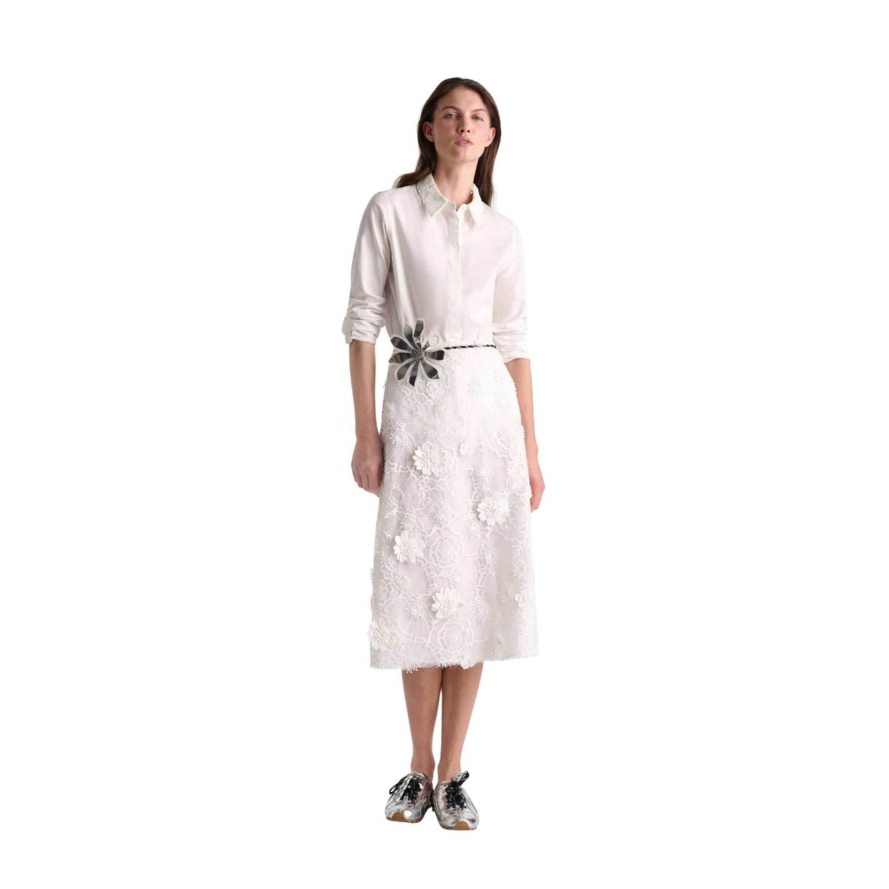 Light, romantic, and intricately detailed, the Sheer Meadow Skirt captures Dorothee Schumacher’s refined femininity through texture and movement. Crafted from embroidered organza with dimensional floral detailing, it brings a soft statement feel to both occasion and elevated daytime looks.