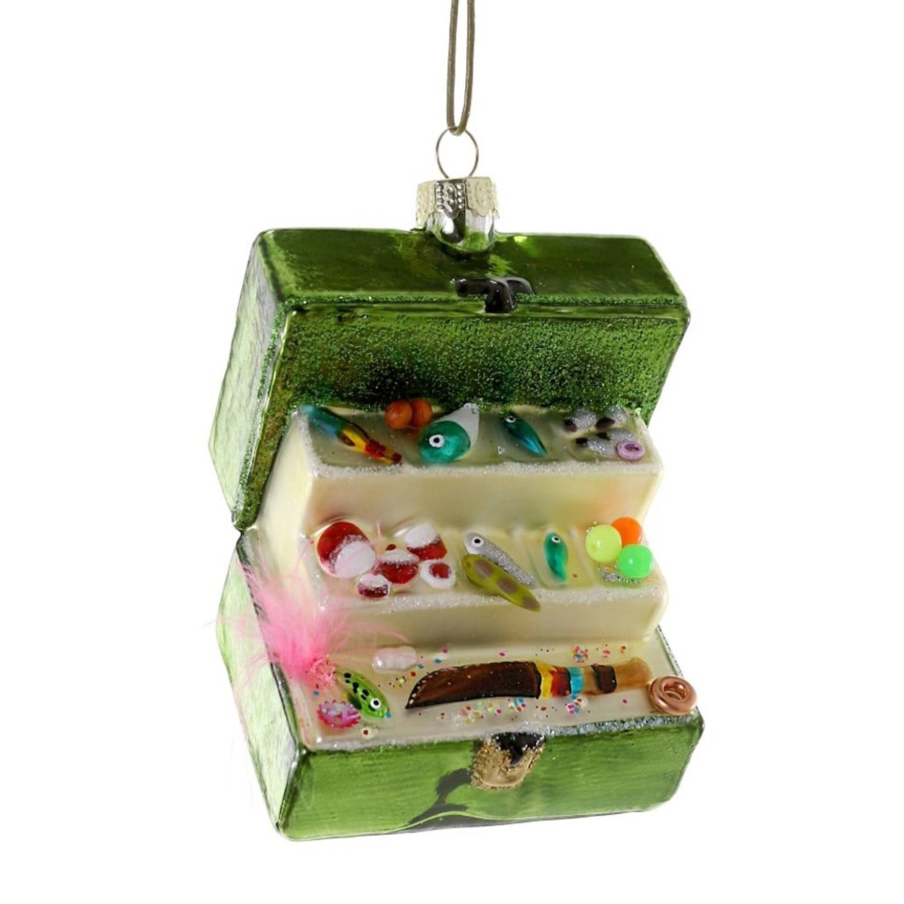Celebrate your love for fishing with this unique Tackle Box Christmas ornament, a great addition to any holiday decor for anglers and outdoor lovers. This ornament features a miniature tackle box design, complete with detailed compartments filled with fishing lures, bobbers, hooks, and other gear. Made from high-quality glass and finished with glitter accents, this ornament adds a touch of outdoor charm to your Christmas tree, while capturing the spirit of a favorite pastime.