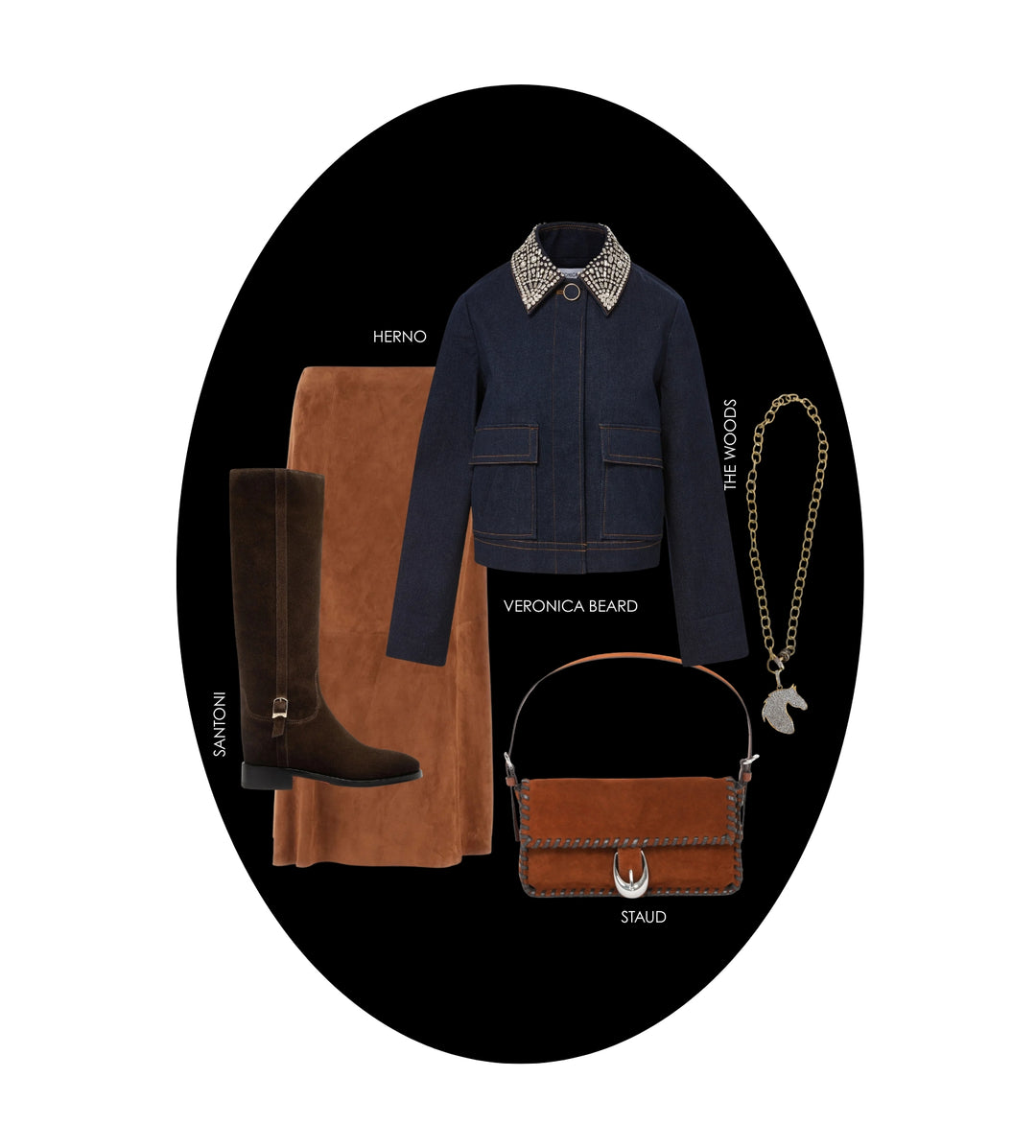 A study in contrast—heritage embroidery set against structured denim, channeling equestrian tradition.