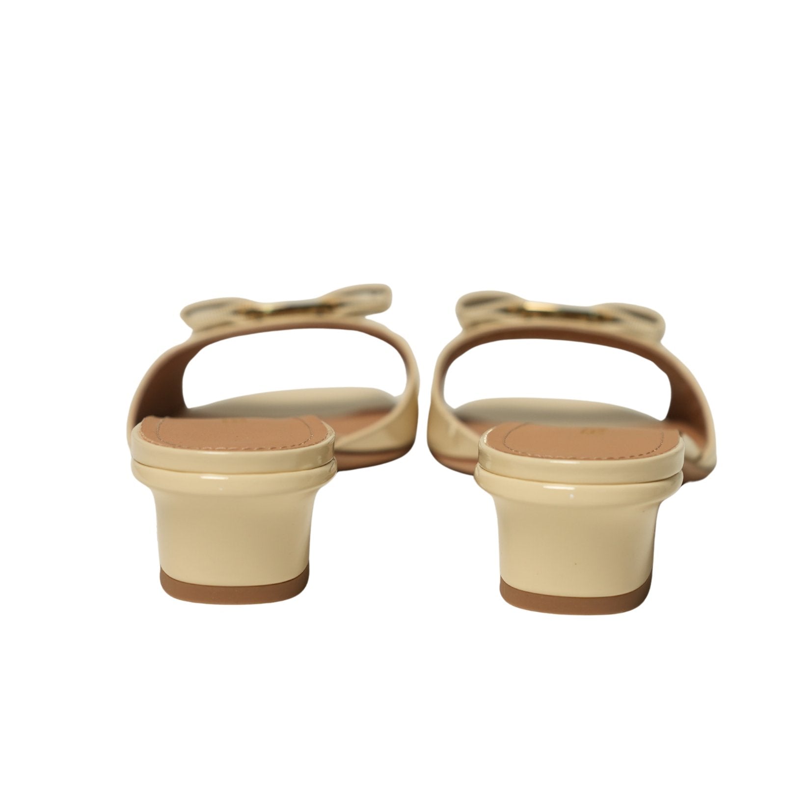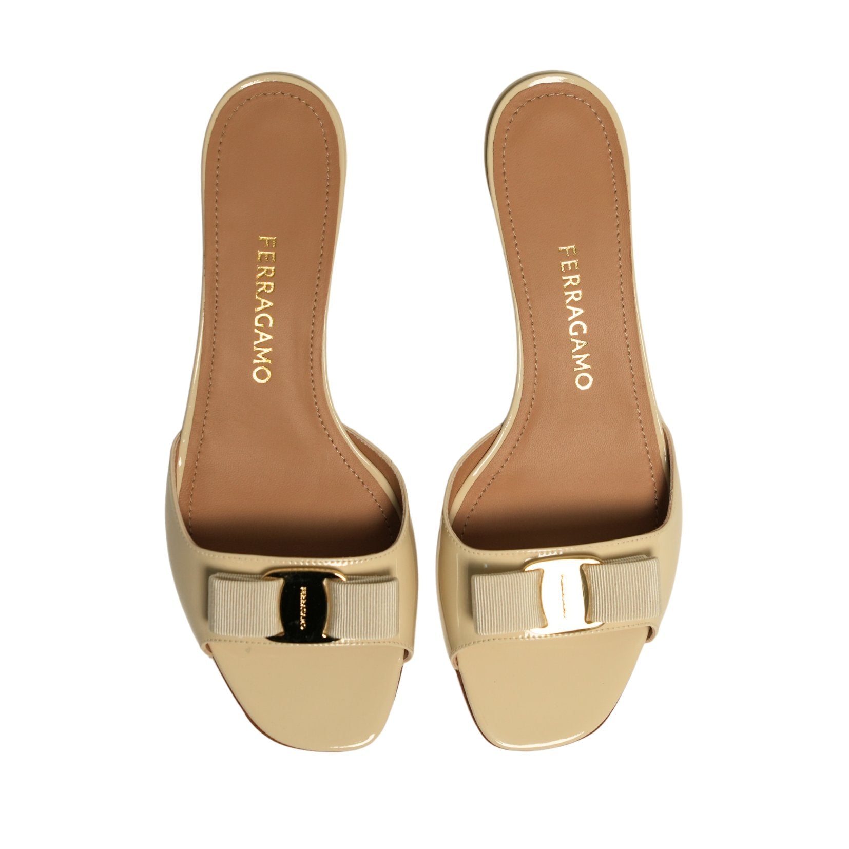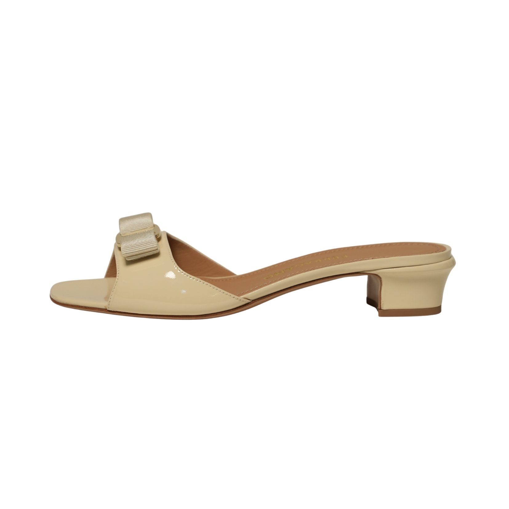 A refined take on the effortless slide. This sleek style pairs the corded texture of grosgrain with the high-shine finish of a glossy naplak strap across the toe. Finished with a signature Vara bow held by a gold-tone plate, the design balances romance and modern ease. A low curved heel adds subtle lift for all-day wear.