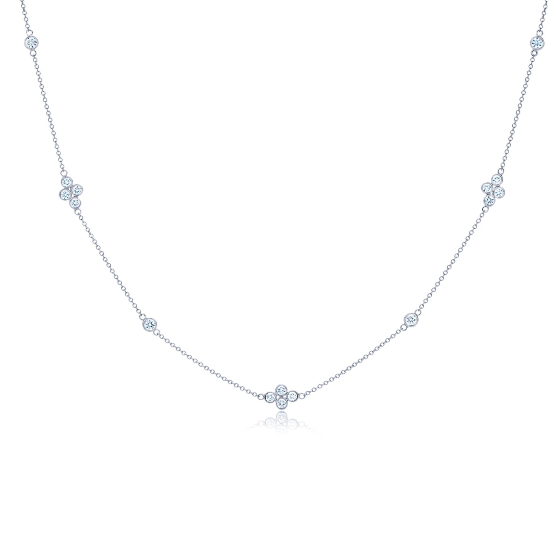 This fluid strand of diamonds is designed to wear alone or layered with other chains. Clusters of four diamonds alternate with single stones in an elegant, brilliant rhythm. Kwiat artisans meticulously craft this 18k white gold necklace to be delicate yet durable, an effortless way to add brilliance to everyday style.