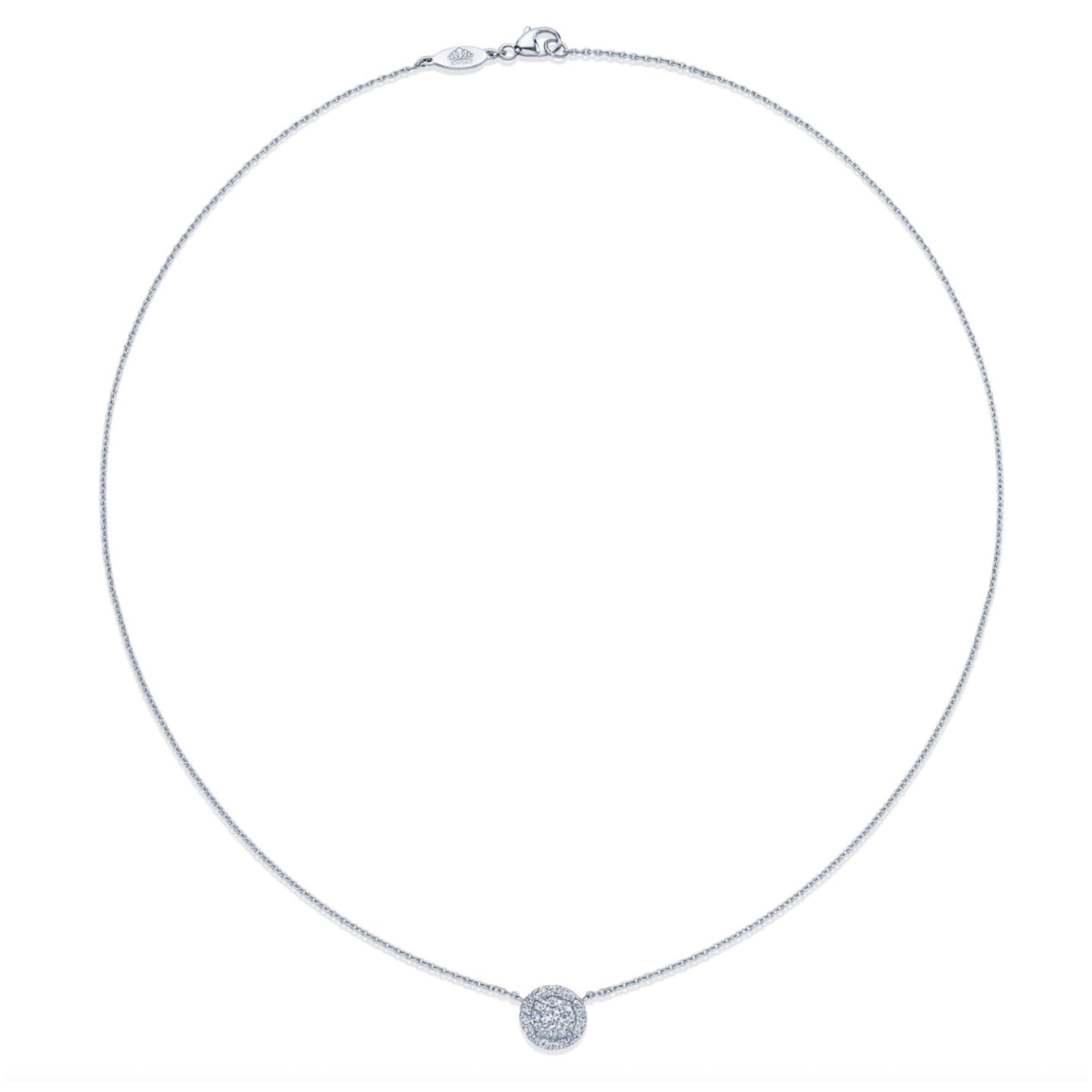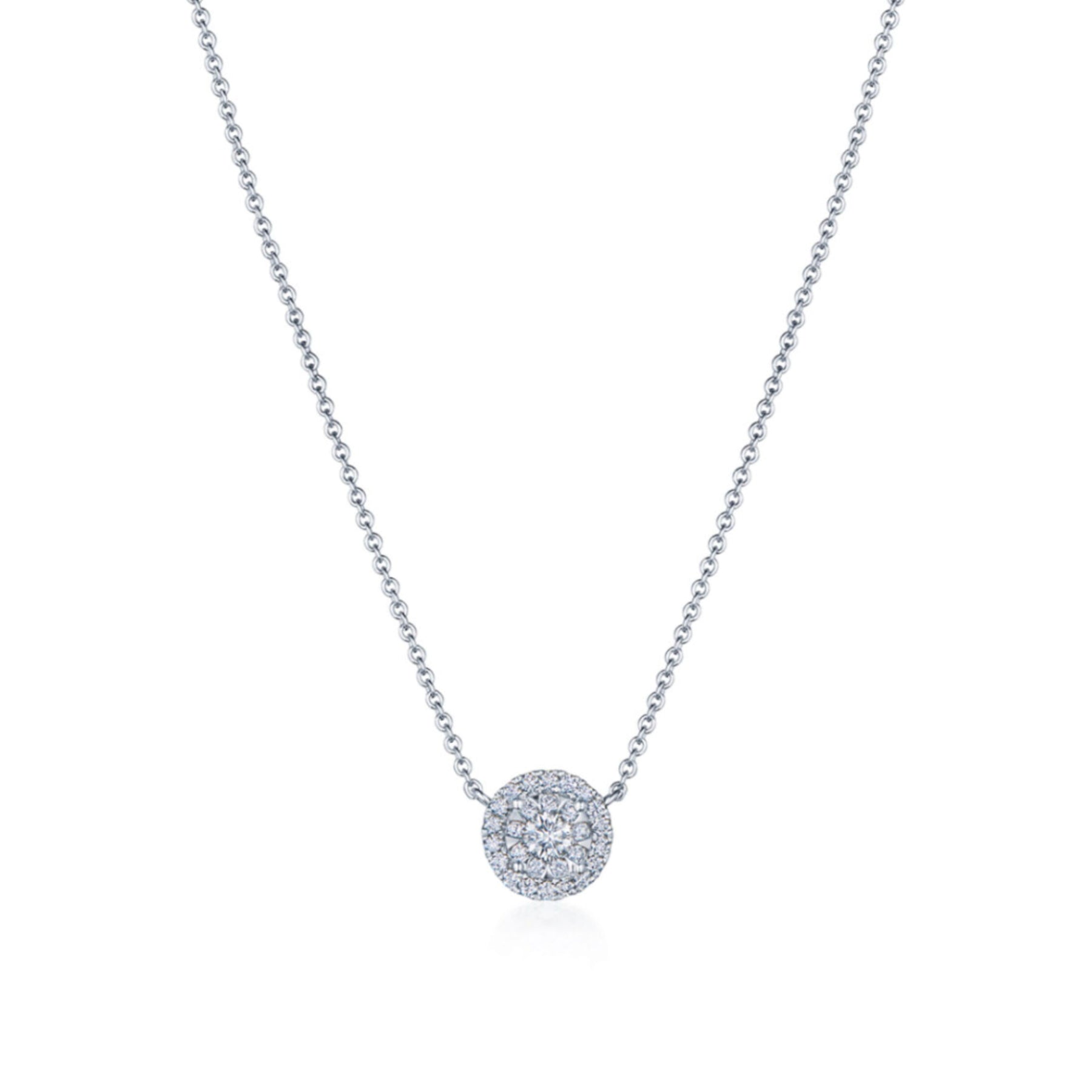 Like shining rays of the sun, halos of exquisite diamonds emanate from a round brilliant center stone. This classic pendant exemplifies Kwiat’s peerless standards for cutting diamonds, no matter their size. Master artisans craft the 18k white gold setting using minimal metal, which allows maximum light to enter the diamonds, enhancing their sparkle.