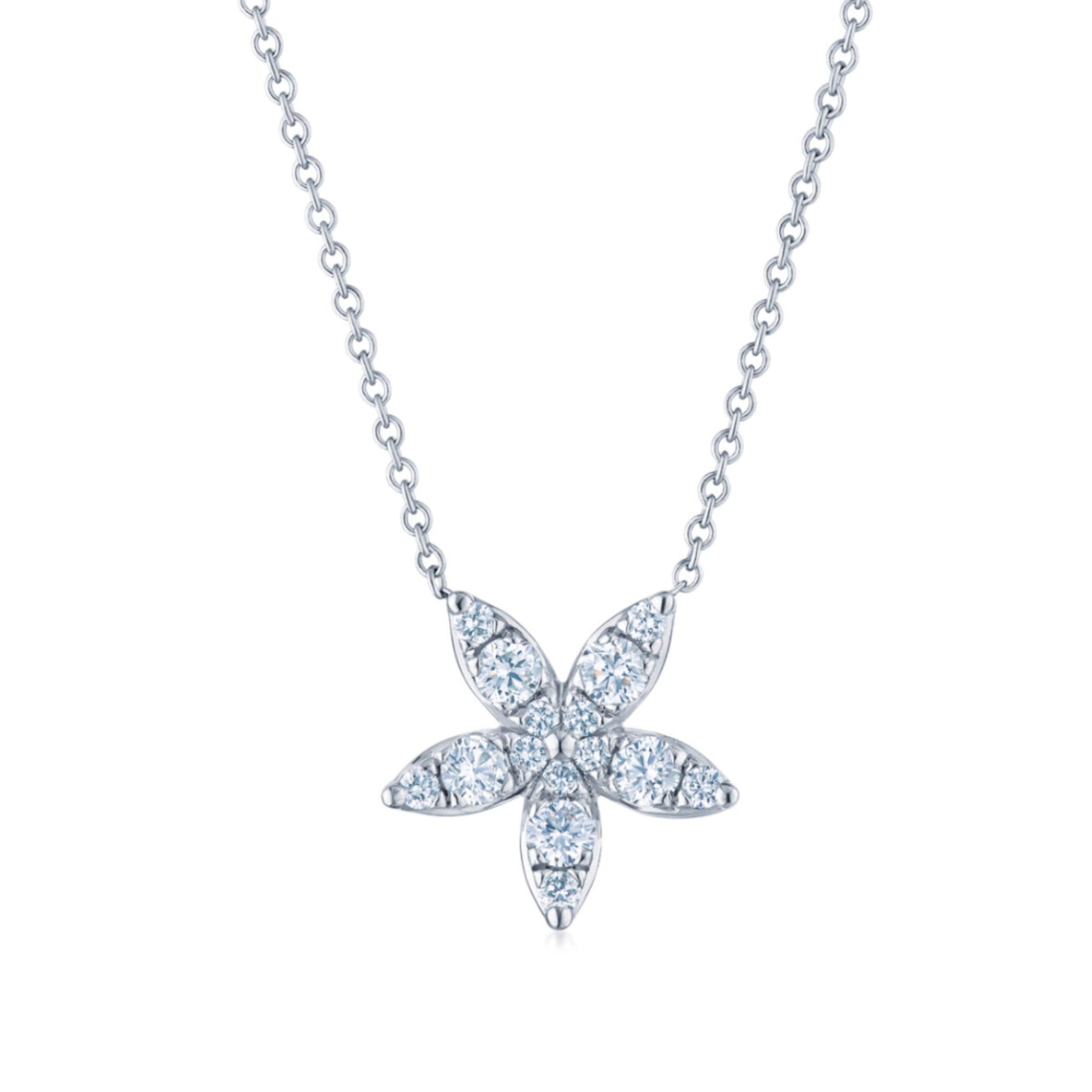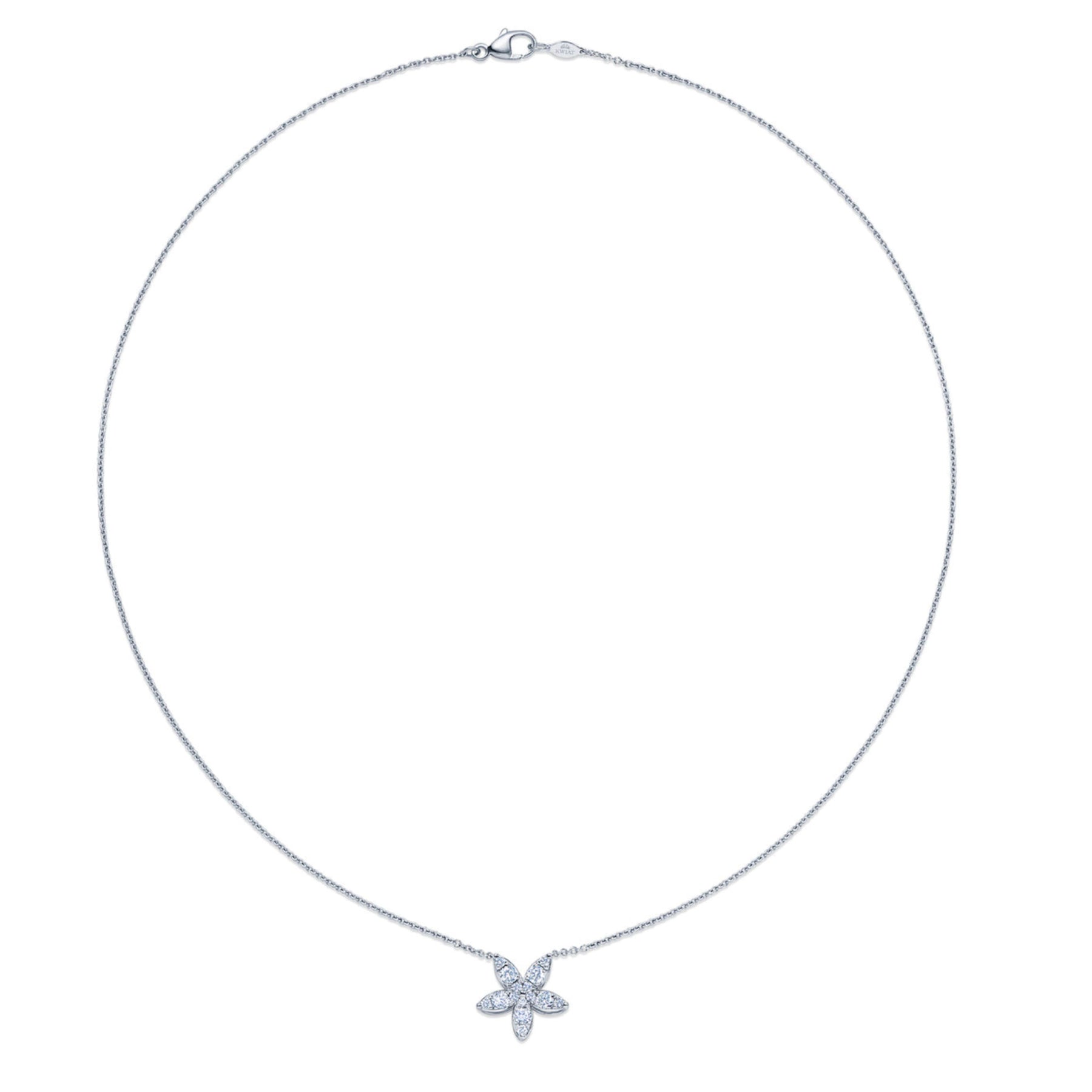 Every sun is a star, and every diamond in this pendant is absolutely brilliant, thanks to Kwiat’s peerless cutting standards. Set in 18K white gold, it dazzles against the neckline from day to night. Master artisans engineered the design to allow maximum light to enter the diamonds, amplifying their sparkle.