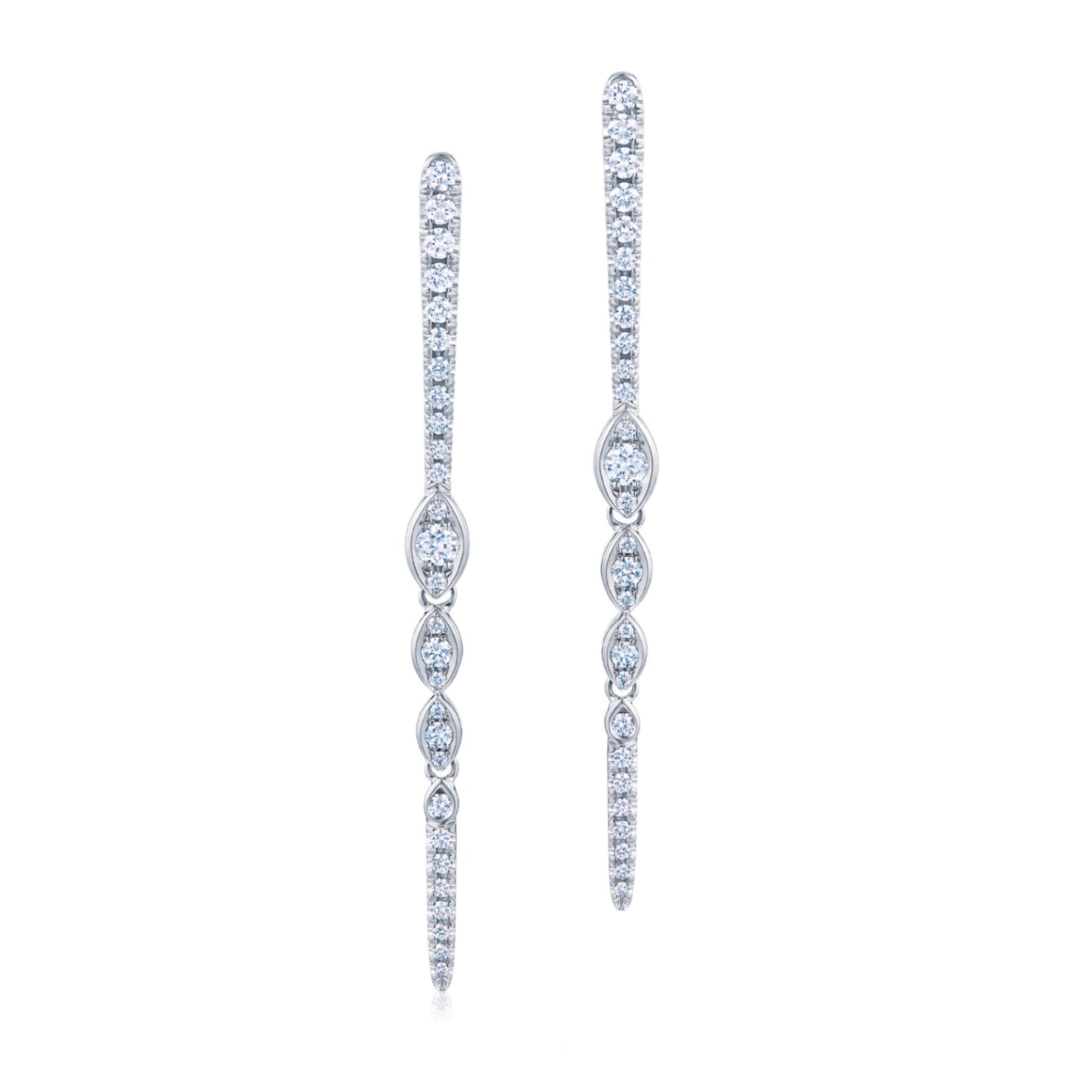 Delicate diamond vines dance in the breeze like strands of a wisteria cluster. Although petite, the stones are cut to Kwiat’s peerless standards to ensure maximum brilliance. Master artisans meticulously engineered the 18K white gold design with invisible links that allow the earrings to gently sway without twisting.