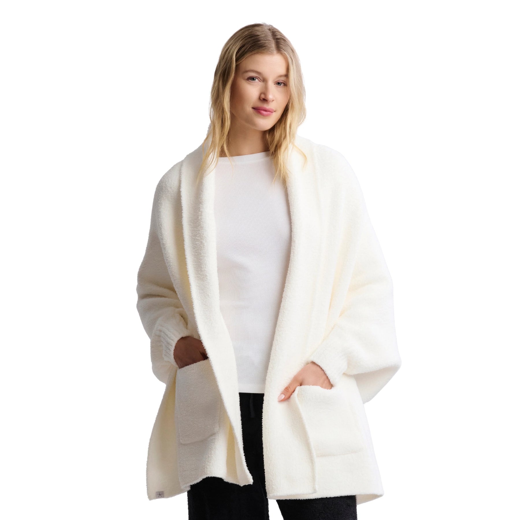 From our Day to Night Collection®, the CozyChic® Blanket Wrap combines timeless elegance with effortless comfort. This one-size-fits-all wrap features ribbed cuffs and roomy front patch pockets, making it both stylish and functional. Its generous length provides warmth without bulk, allowing you to move freely while staying wrapped in cloud-like softness.