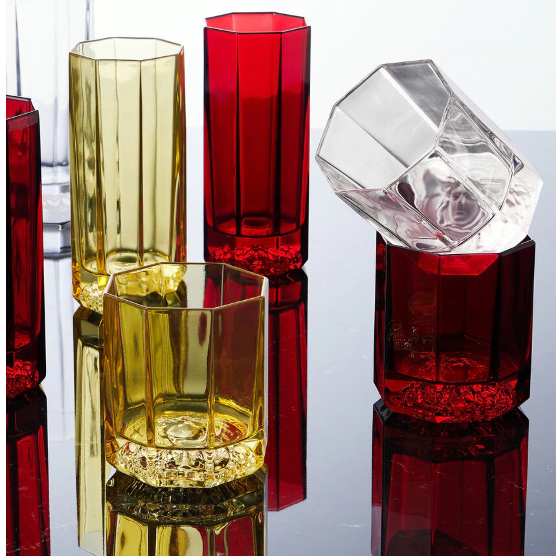 The bold faceted design and rich hue evoke contemporary luxury while maintaining the brand’s unmistakable heritage of refinement and craftsmanship. Every piece is meticulously cut, milled, and polished from solid glass blocks, resulting in subtle variations that make each tumbler truly unique.