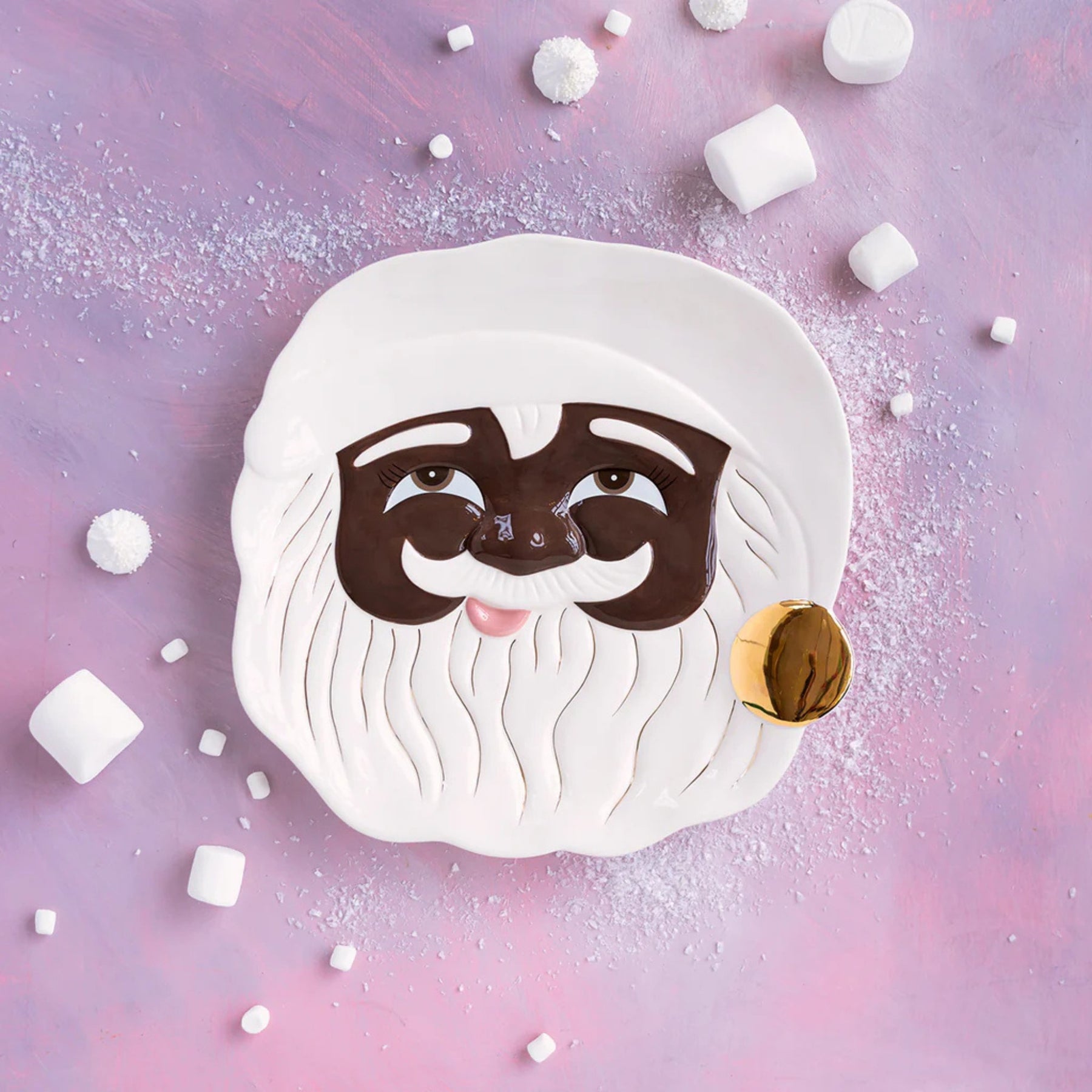 Bring festive cheer to your holiday gatherings with the Papa Noel Cookie Platter, a whimsical and charming ceramic piece designed to showcase your holiday treats. Featuring Santa’s smiling face with delicate hand-glazed details and a touch of real gold, this platter is both functional and decorative, perfect for the season of joy.