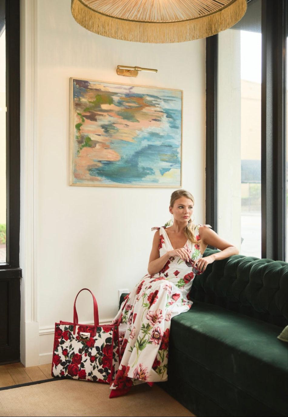 People-watch in style from the lobby as you wait for your Uber to brunch, dressed in Oscar de la Renta and carrying a perfectly paired Dolce & Gabbana tote.