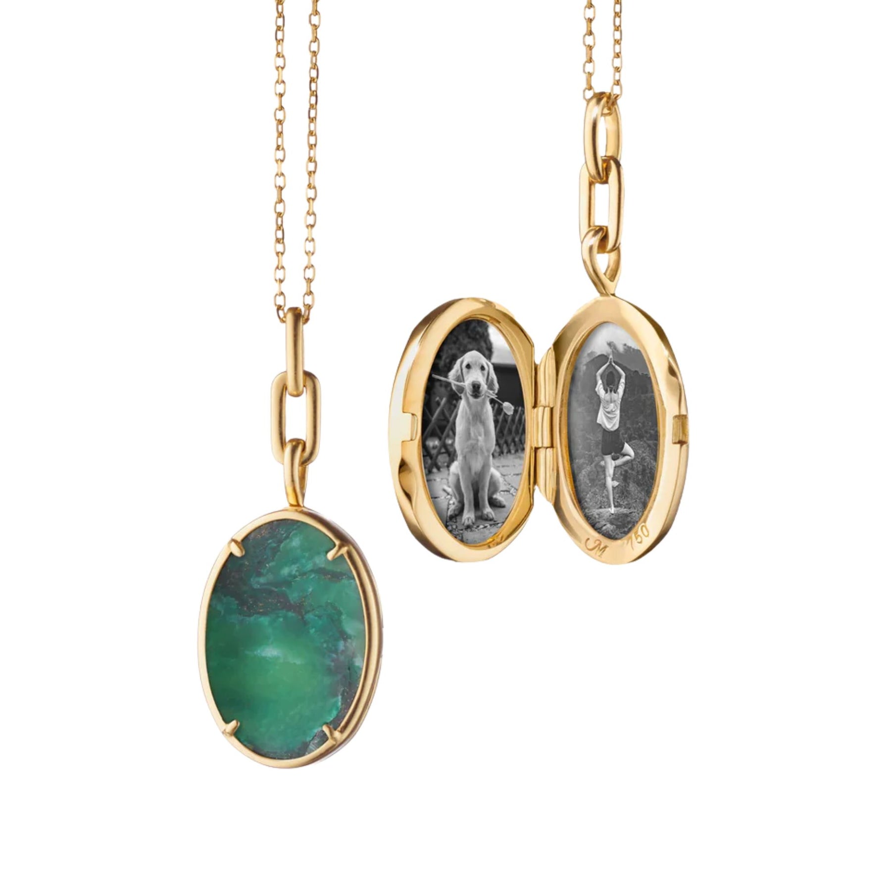 "Elle" 18K Gold AVENTURINE OVAL LOCKET ON 17" CHAIN