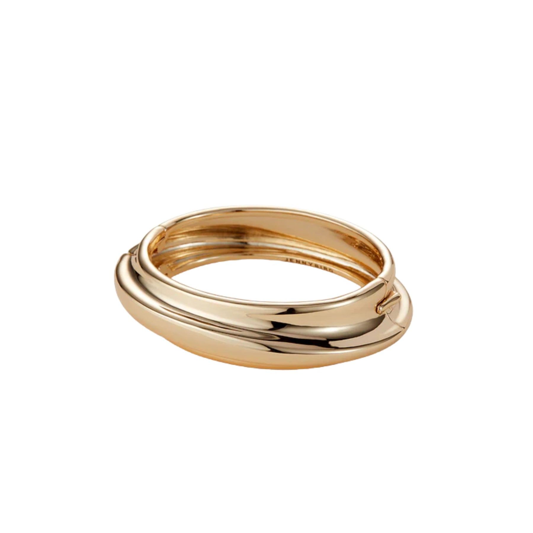 The Lennon Bangle features an organic silhouette with deep contours that create a fluid, sculptural look. Designed with both elegance and practicality, this bracelet opens and closes with a secure hinge and tab lock closure. Simply push down on the highest point of the clasp to open, and listen for a “click” when closing to ensure it is properly locked. Finished in radiant high-polish gold for a timeless shine.