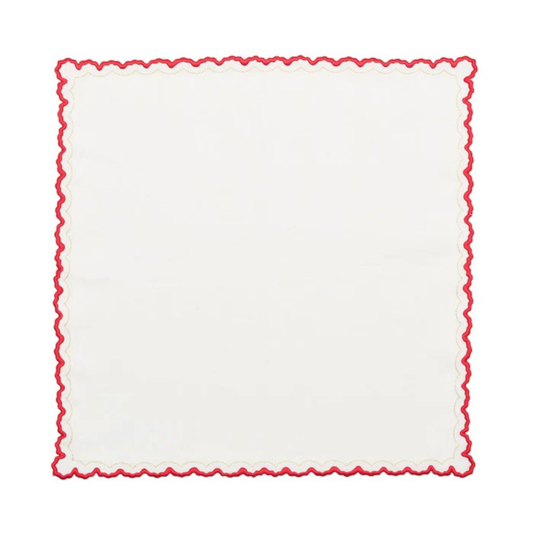 The Arches Napkin in White and Red redefines classic dining elegance with a modern geometric flair. Featuring a thick embroidered border and delicate pick-stitch detailing, this refined linen napkin adds structure and sophistication to any tablescape. Its clean design and subtle contrast make it perfect for both formal entertaining and casual gatherings, blending timeless style with contemporary charm.