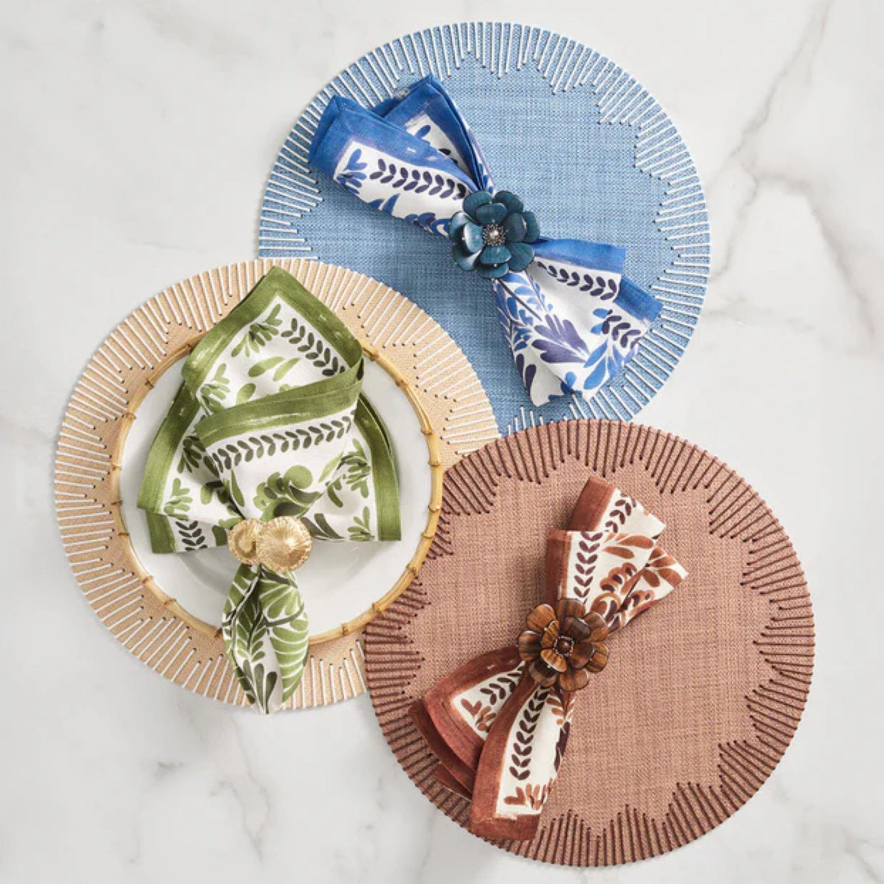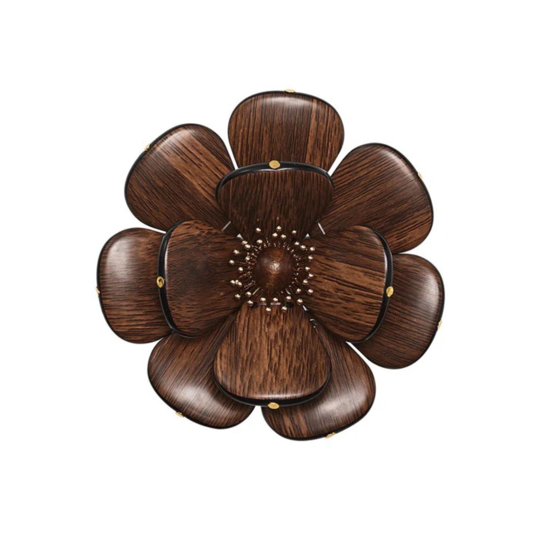 The Begonia Napkin Ring radiates timeless beauty and natural elegance, capturing the charm of its namesake flower. Designed with meticulous craftsmanship, each petal is sculpted from acrylic beads featuring a faux wood finish, giving the piece an earthy sophistication. The flower is arranged around a textured central bead and delicate metal spokes, creating a captivating blend of warmth and refinement. Perfect for year-round entertaining, it brings a touch of organic artistry to any table setting—from casual brunches to elegant dinner parties.