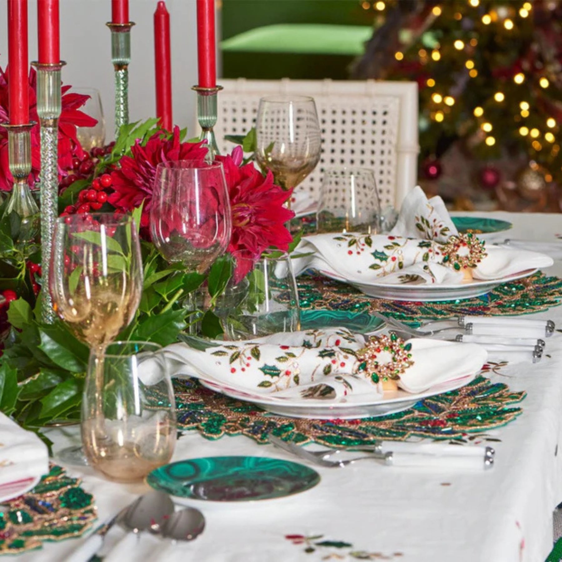 The Gem Wreath Napkin Rings bring the ultimate touch of festive glamour to your holiday table. With their brilliant jewel tones and intricate craftsmanship, they serve as both functional napkin holders and stunning decorative accents. Whether you’re hosting a seasonal dinner or creating a memorable tablescape, these napkin rings add elegance, warmth, and a hint of sparkle to every celebration.
