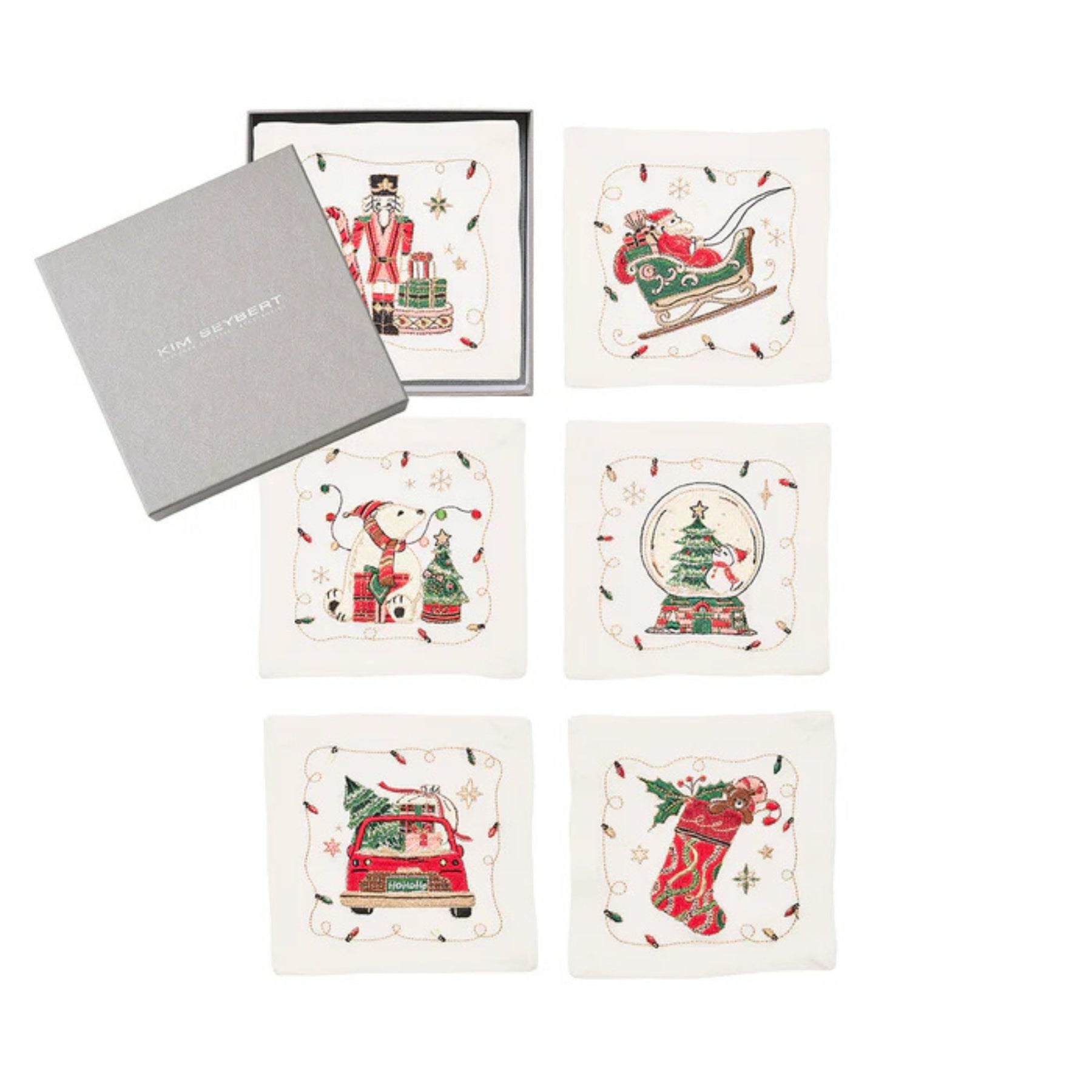 The Holly Jolly Cocktail Napkins bring joyful elegance to your holiday gatherings. Each napkin features intricate, hand-embroidered designs that capture the magic of the season — from Santa’s sleigh to festive stockings and sparkling ornaments. Crafted from fine linen, these napkins add a touch of refinement and cheer to every toast, making them perfect for serving cocktails, eggnog, or champagne in true holiday spirit. Their heirloom-quality detail ensures they’ll become a cherished part of your seasonal traditions for years to come.