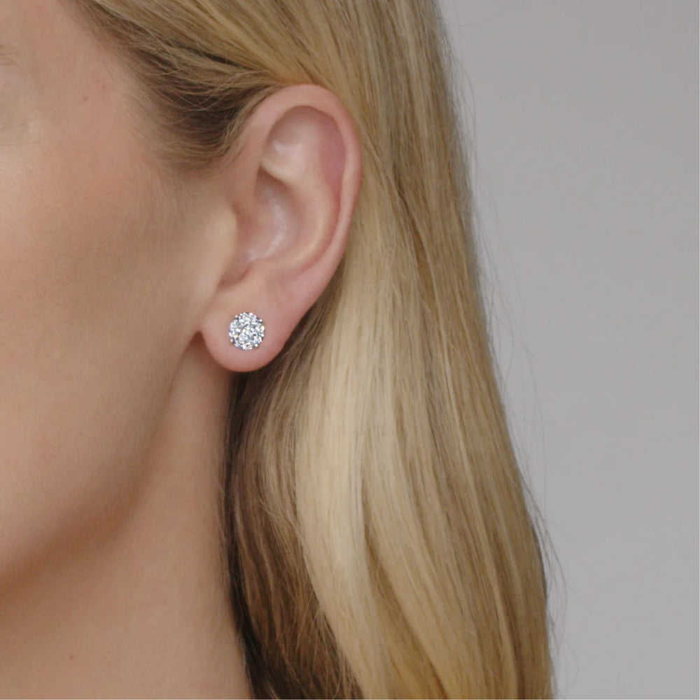 Sunburst Emerald Cut Diamond Drop Earrings with Halo in 18K White Gold