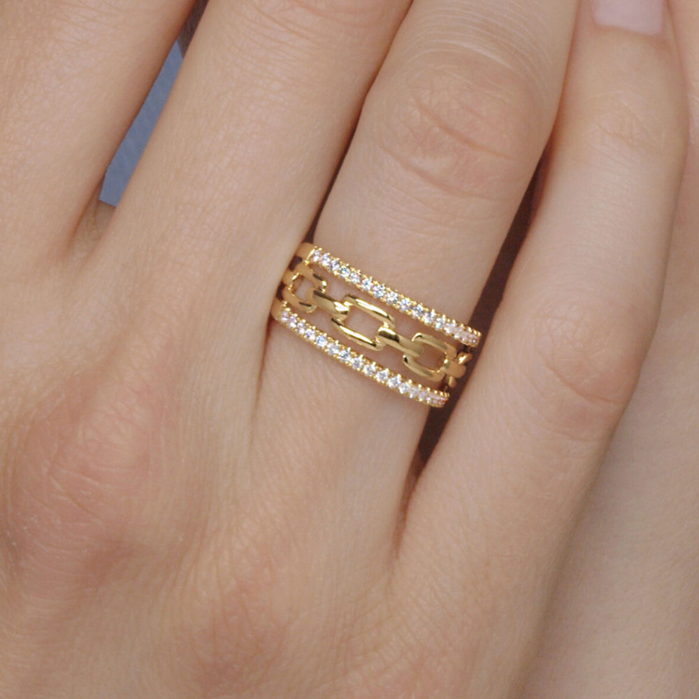 Moonlight 3-Row Diamond YG Ring - 0.75ct