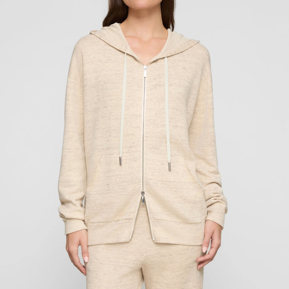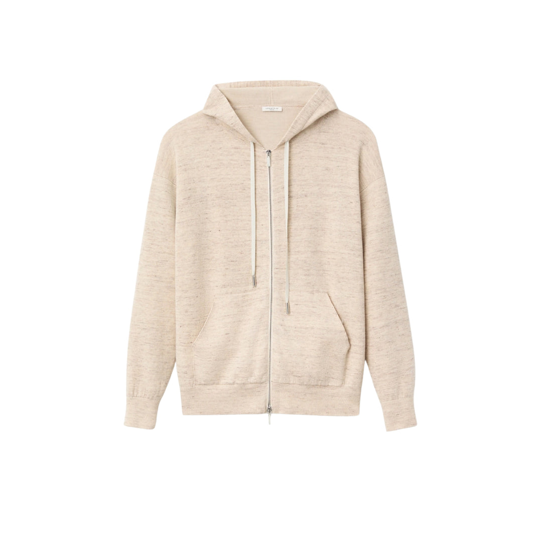 Linen-Cotton Hooded Cardigan in Marled Neutral
