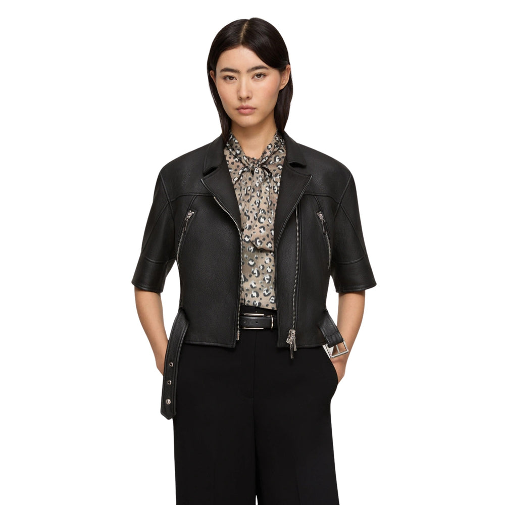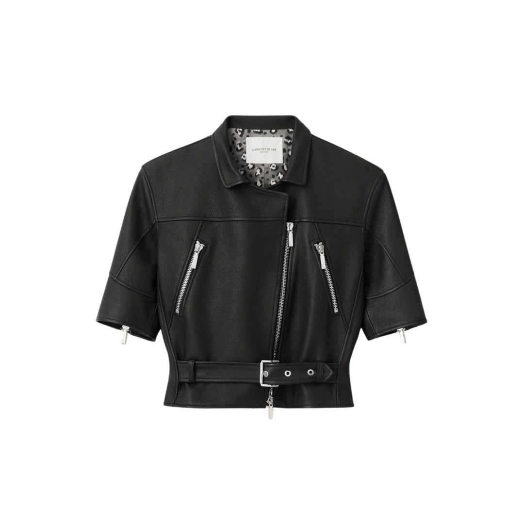 Short Sleeve Leather Jacket in Black