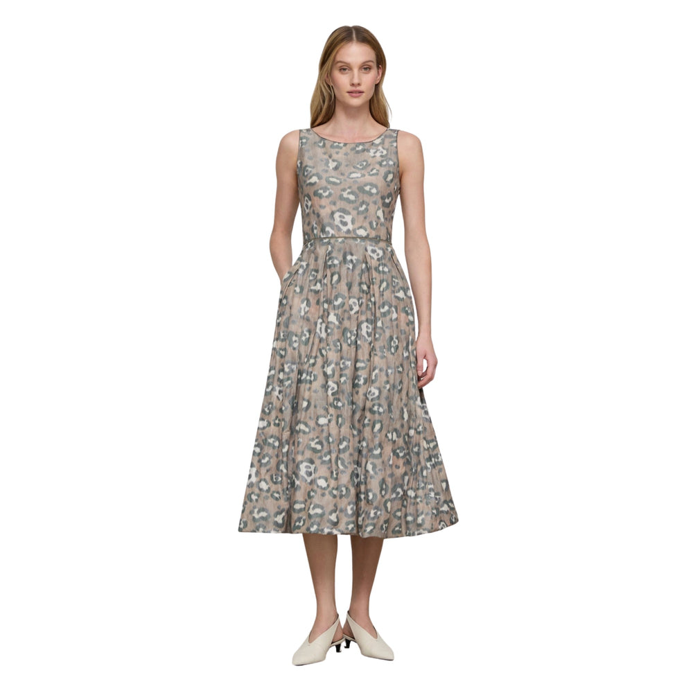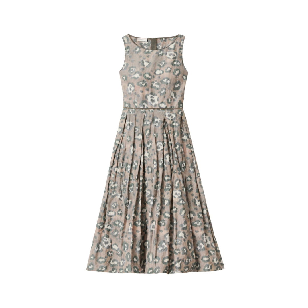 Sleeveless Dress with Bubble Hem Skirt in Brownstone Multi