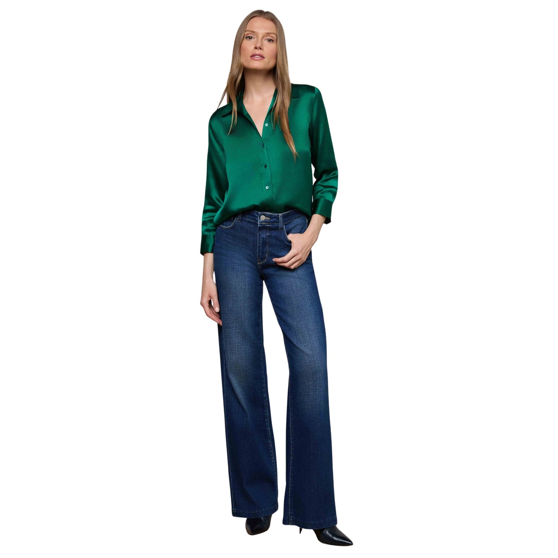 The Dani Blouse is a timeless silk button-down that brings effortless sophistication to every wardrobe. Cut from luxurious silk charmeuse with a lustrous finish, it drapes beautifully while maintaining a tailored silhouette. Now refreshed in an elegant bottle green, this piece offers striking versatility for day-to-night styling.