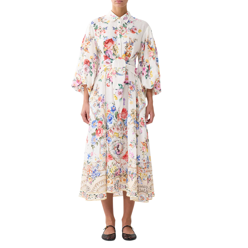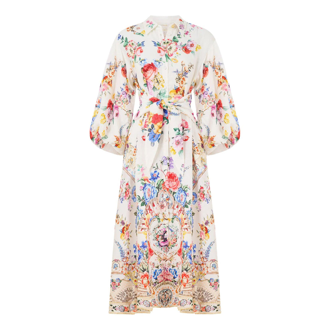 Waist Tie Shirt Dress With Bubble Sleeve in I Left My Heart in Granada
