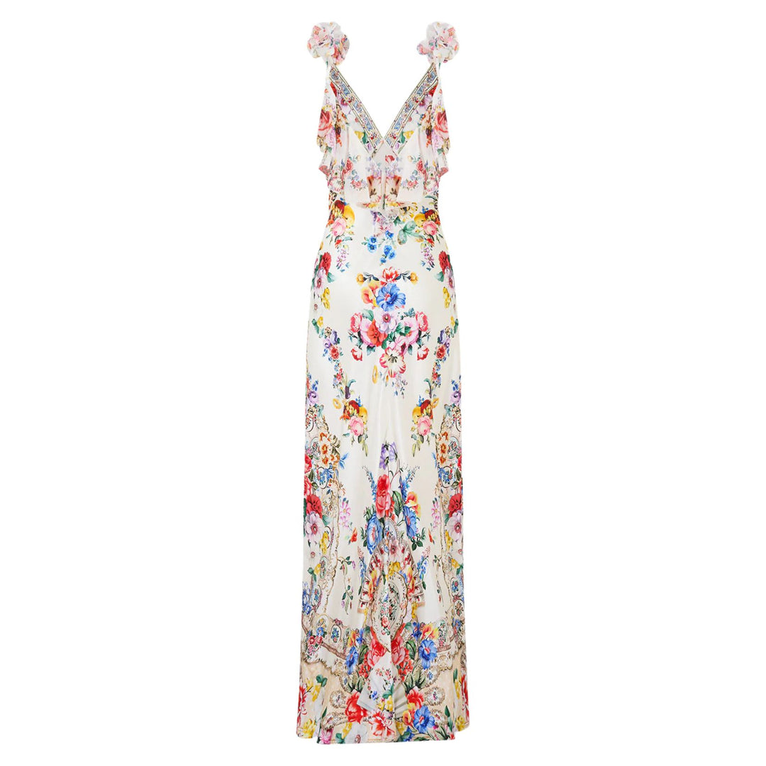 V-Neck Bias Slip Dress With Back Frill in I Left My Heart in Granada