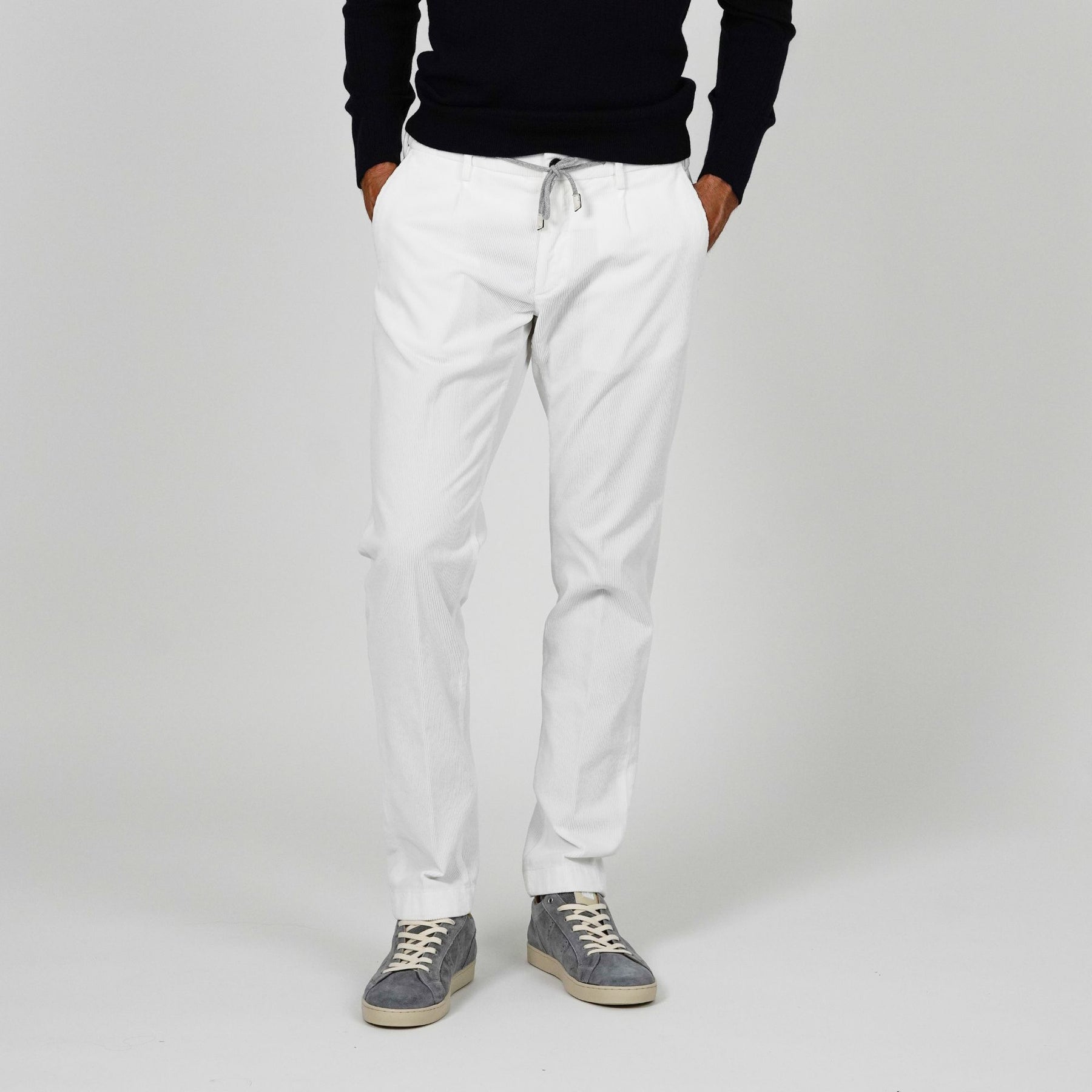 Fradi elevates everyday comfort with this ultra-soft corduroy jogger, crafted from a lightweight cotton stretch fabric that moves with you. Designed with a refined slim leg, adjustable drawstring waist, and subtle texture, it blends relaxed ease with a polished finish — making it the perfect pant for travel, weekend wear, or casual days in the city. Effortless, versatile, and exceptionally comfortable.