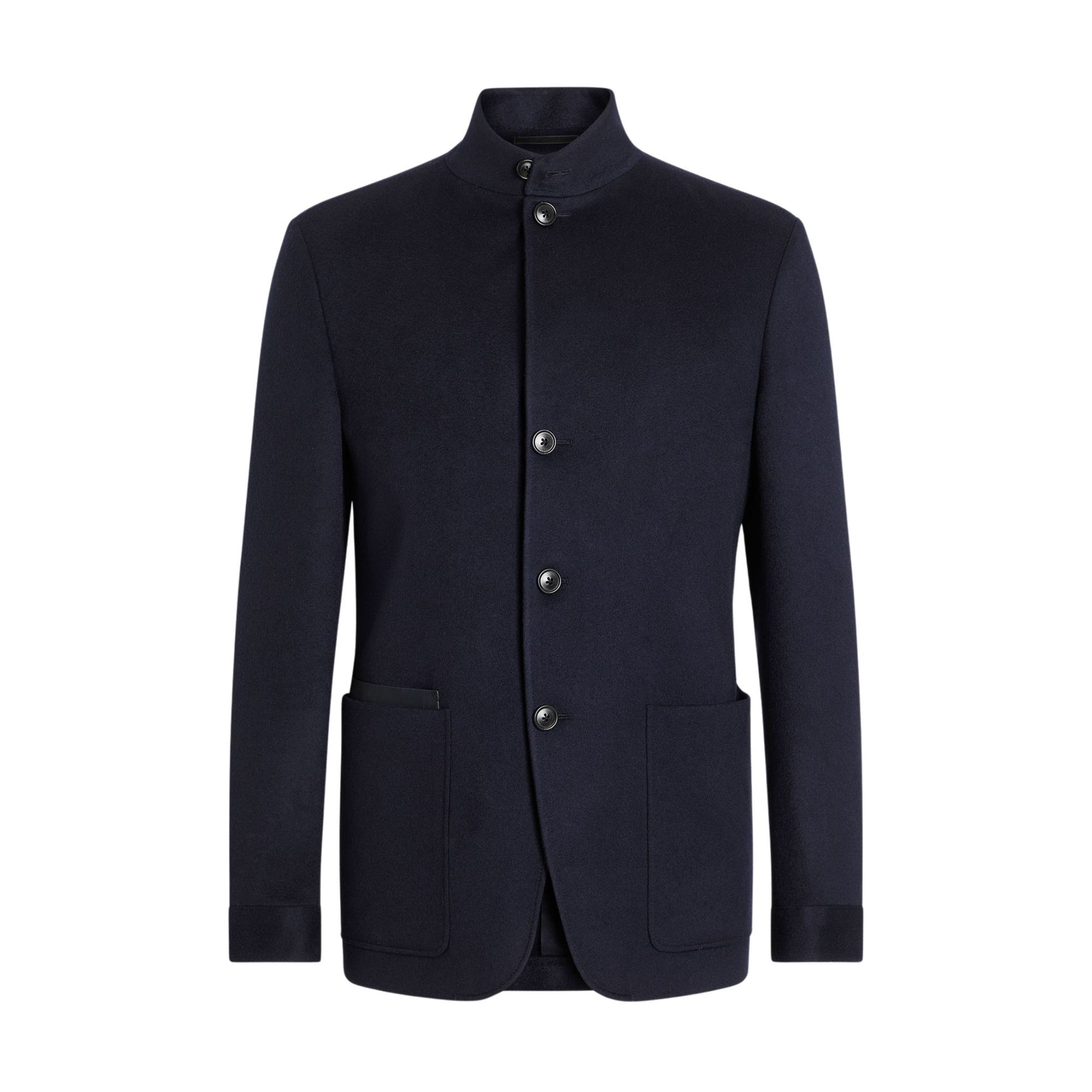 Exclusive Oasi Cashmere fabric elevates this navy blue version of ZEGNA's iconic Il Conte chore jacket with the authentic allure of natural, fully traceable fibers. Styled with a sleek stand collar, full button closure and our signature 232 Road Brand Mark on the back.