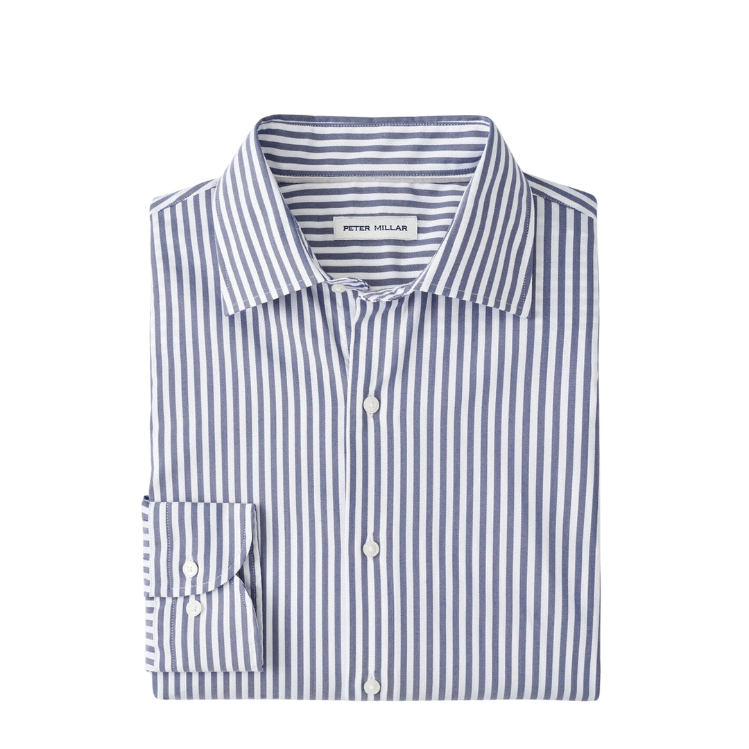 Bengal Striped Elevated Pique Shirt Contemporary Fit in Light Blue