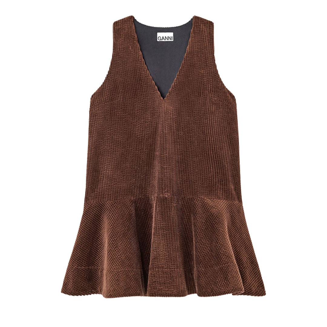 Seersucker Corduroy V-Neck Mini Dress