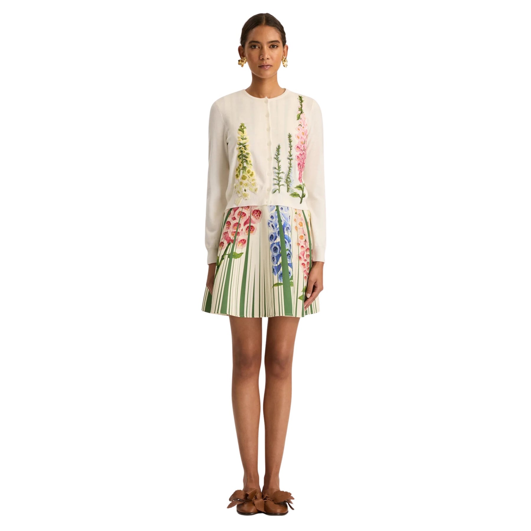 A house favorite reimagined, the Foxgloves Embroidered Cardigan in Ivory is knit from soft virgin wool and adorned with delicate foxglove threadwork embroidery. Designed with a slim fit and classic crew neckline, this refined cardigan offers timeless versatility, layering effortlessly over dresses or casual separates. Crafted in Italy, it reflects artisanal detail and enduring elegance.