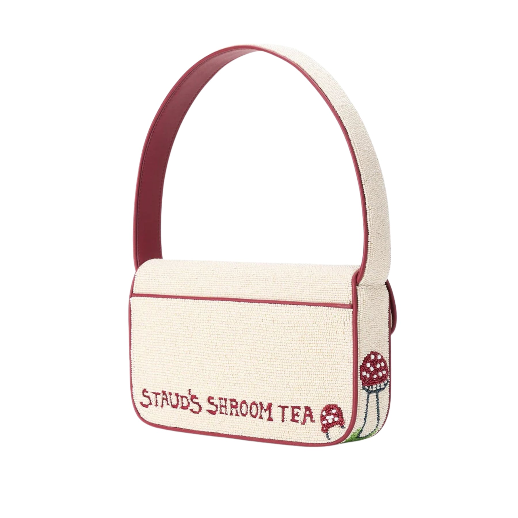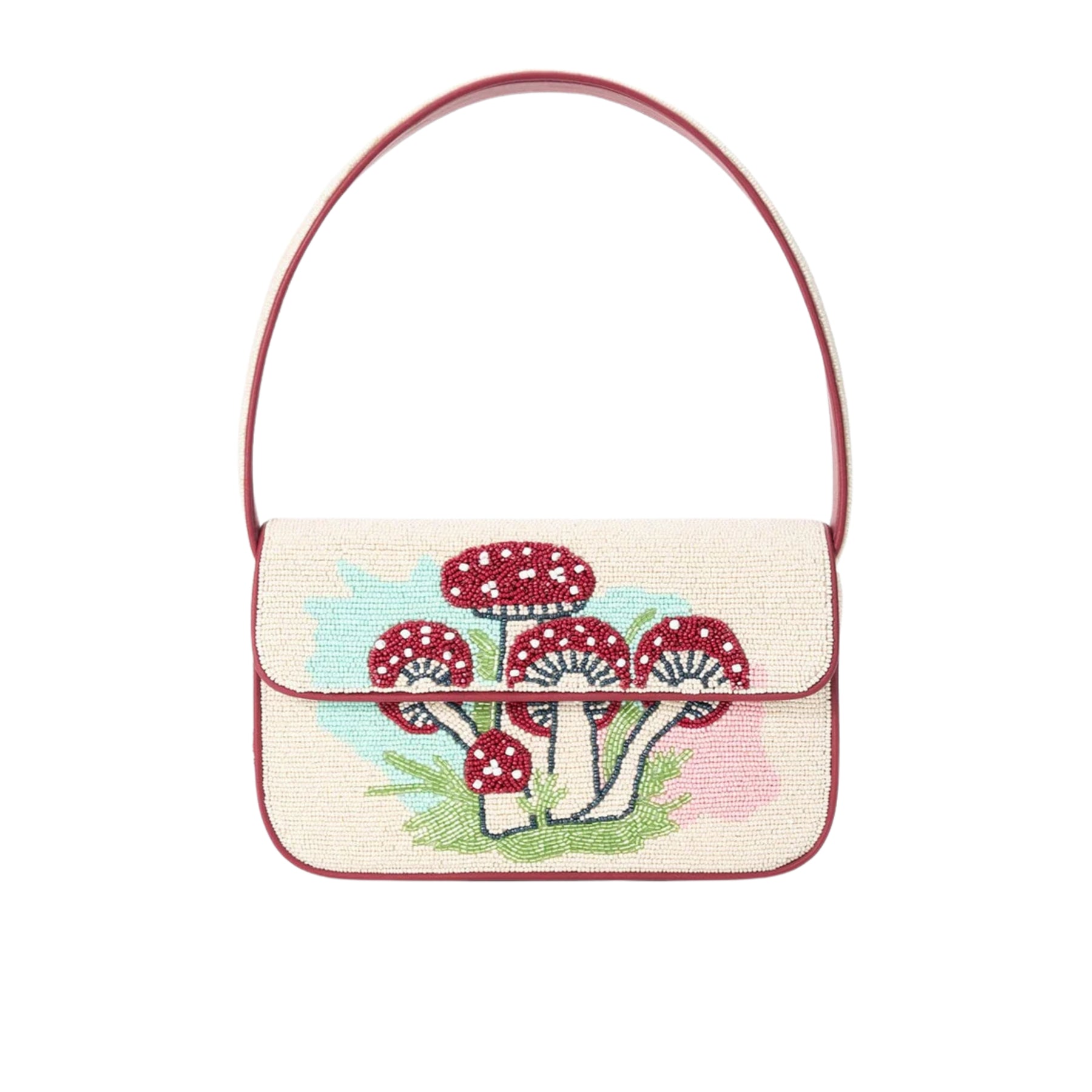 Limited-edition Tommy features a playful seasonal print. The Tommy Bag is a hand-beaded shoulder bag with vegan leather piping. This style features a single flap closure, inner zip, and a back slip pocket.
