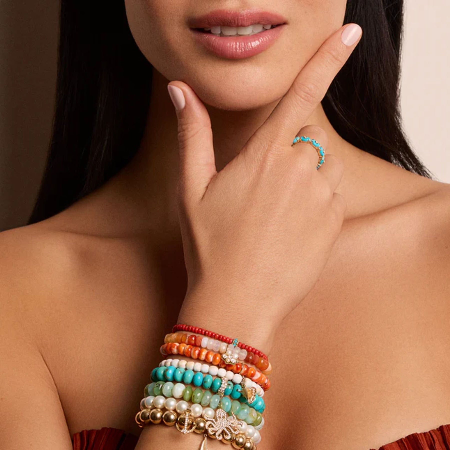 TINY CARVED TURQUOISE STONE ETERNITY RING
