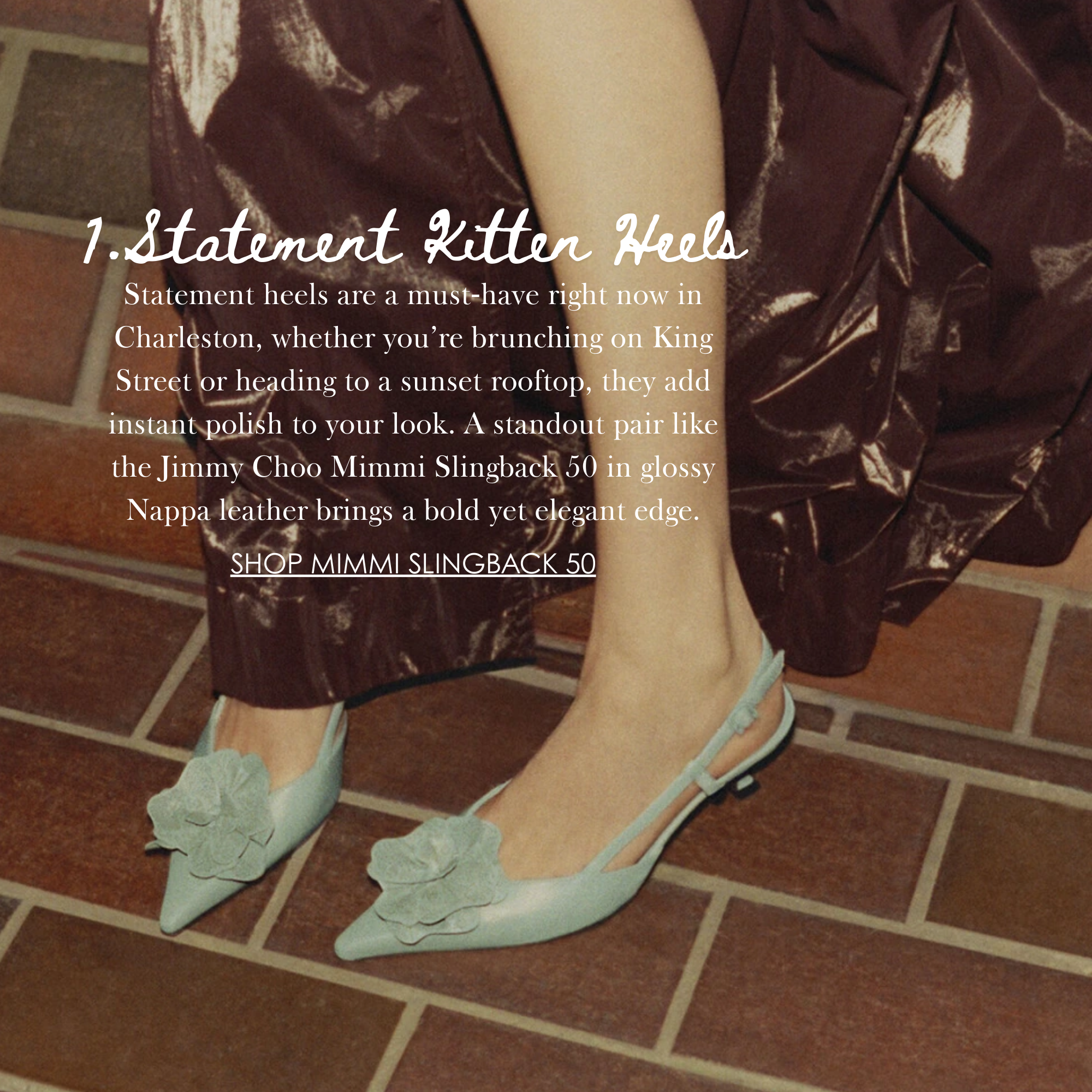 Charleston has always been a style destination, and the new year is bringing a fresh wave of trends we’re seeing all around the Lowcountry. From playful kitten heels that add just the right amount of polish to everyday looks, to bold, chunky jewelry making a statement, these trends feel both fun and effortlessly chic—perfectly in step with Charleston’s laid-back yet fashion-forward vibe.