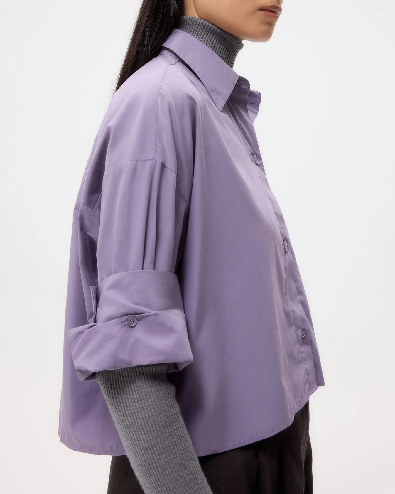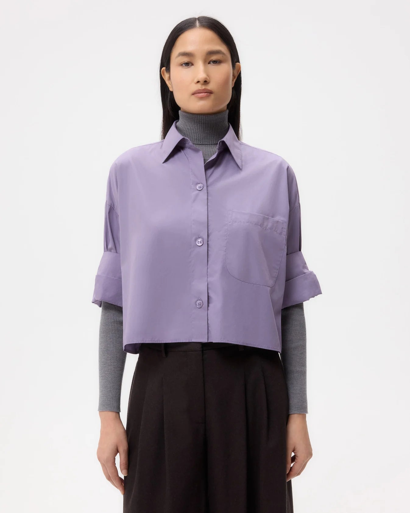 Crafted from breathable cotton poplin, the Next Ex Shirt features a modern cropped length and a relaxed boxy silhouette for effortless style. Designed with a structured spread collar and a button-up placket, it offers a polished look. The chest patch pocket adds subtle utility, while signature double roll button cuffs provide refined detailing. This shirt balances comfort and contemporary tailoring, ideal for layering or as a standalone piece in a sophisticated wardrobe.