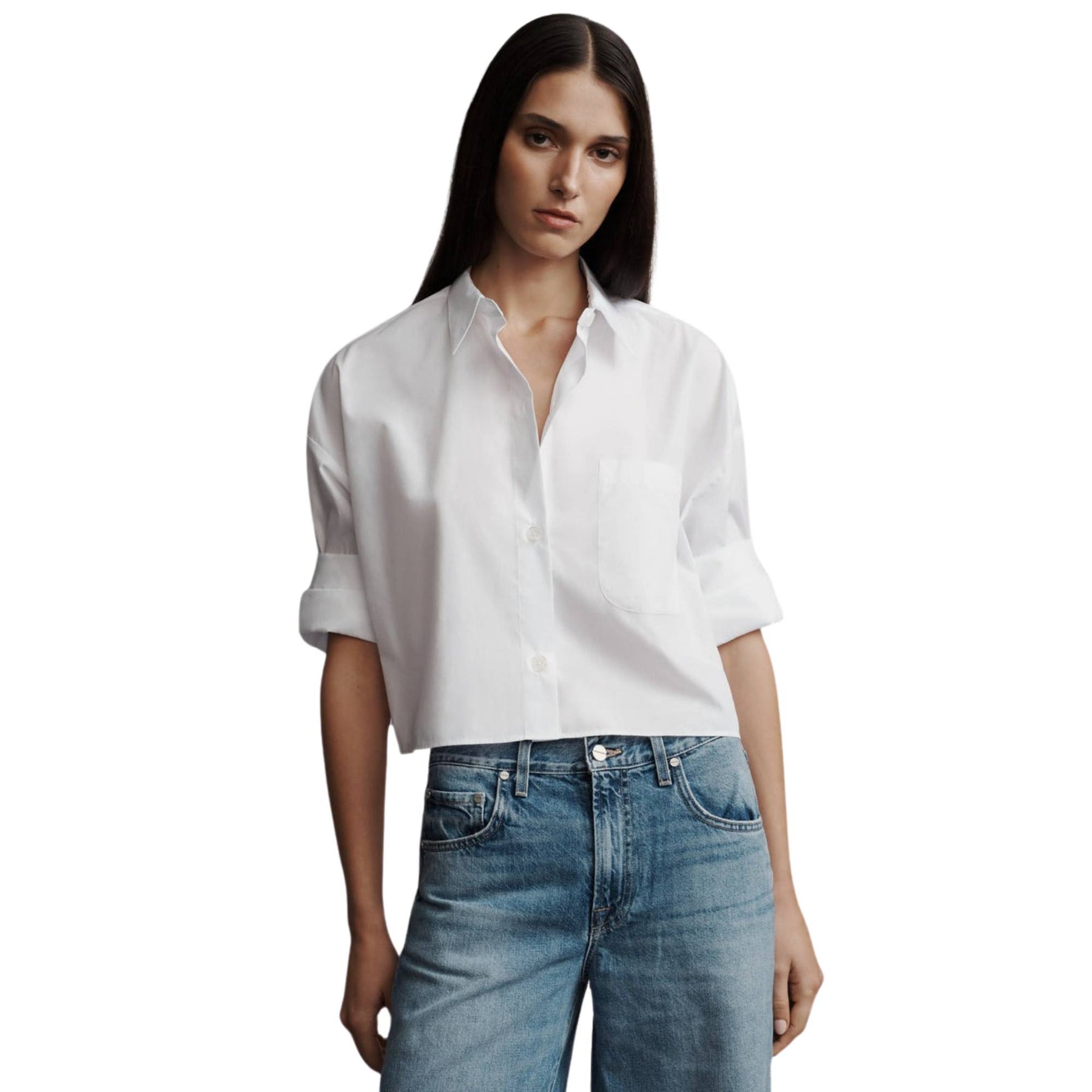 TWP’s signature short sleeved button down crafted in superfine Italian cotton shirting. The Next Ex is a cropped, boxy silhouette, complete with a chest patch pocket, button up placket, spread collar, and our signature double roll button cuffs.
