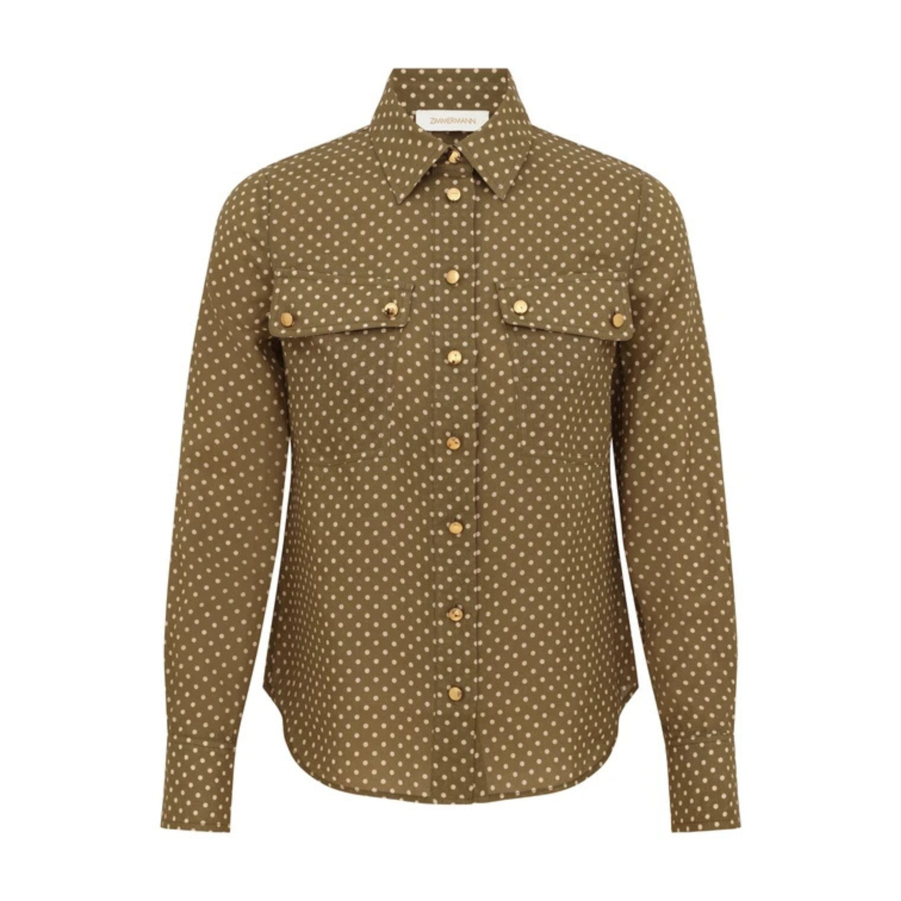 Utility-inspired yet impeccably refined, the Luna Cargo Shirt in Olive Dot is tailored in lightweight ramie with a structured silhouette and heritage gold-button accents. The subtle dot motif and cargo pockets lend modern character, making this polished shirt an elevated essential for sophisticated everyday dressing.