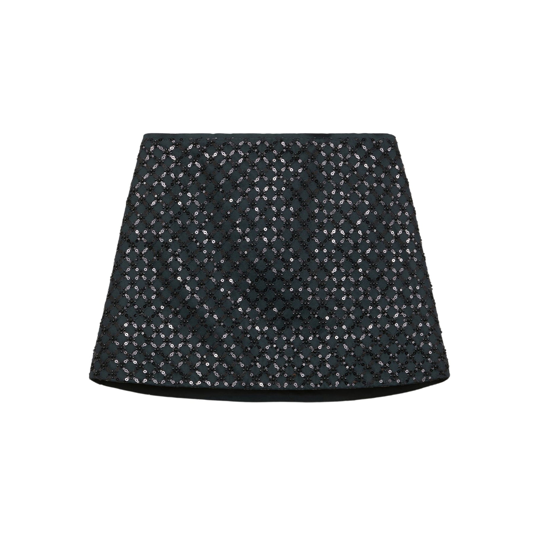 Dressed up in Duchesse: The mini-skirt is crafted in Duchesse and is embellished with floral sequin patterning. The skirt has an A-line silhouette and integrated shorts lining.