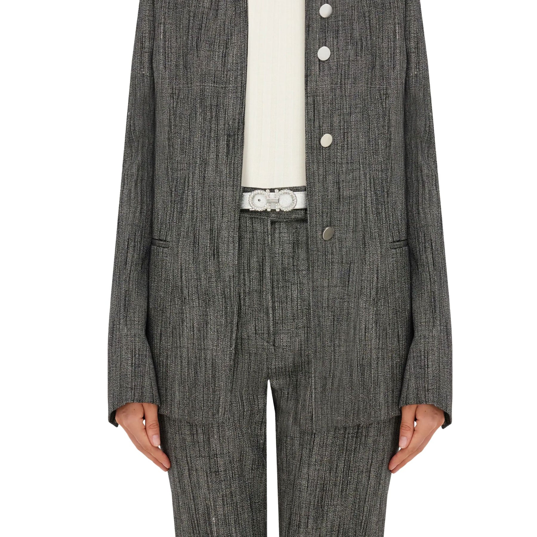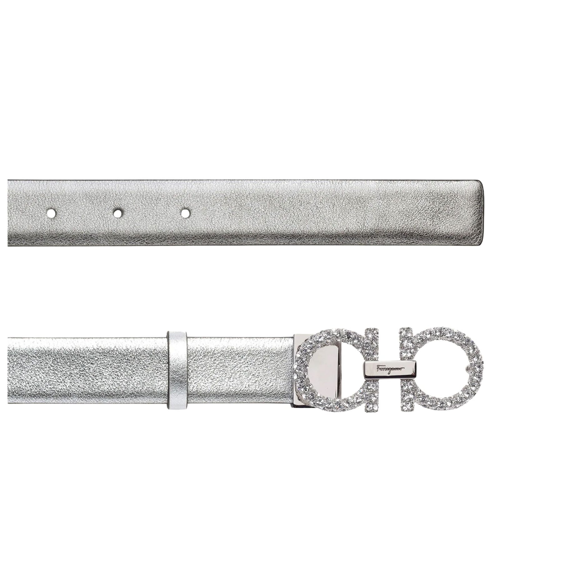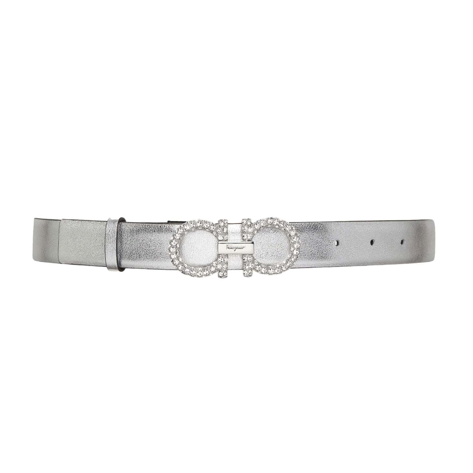 Striking details light up this leather belt for a sophisticated look that is sure to turn heads. Made of Italian calf, the leather is laminated in a cool silver hue for a super glam flair. Perfect for evening outfits, the buckle is engraved with the signature, which simply confirms its iconic status. The adjustable length allows for a more personalized fit and style. We invite you to check our size guide for more information.