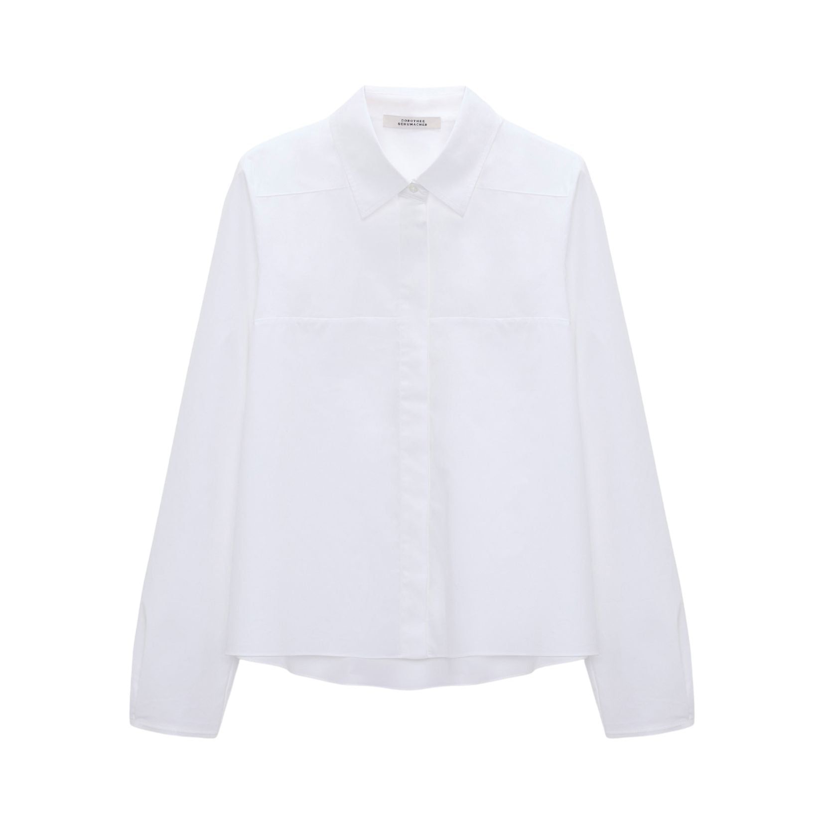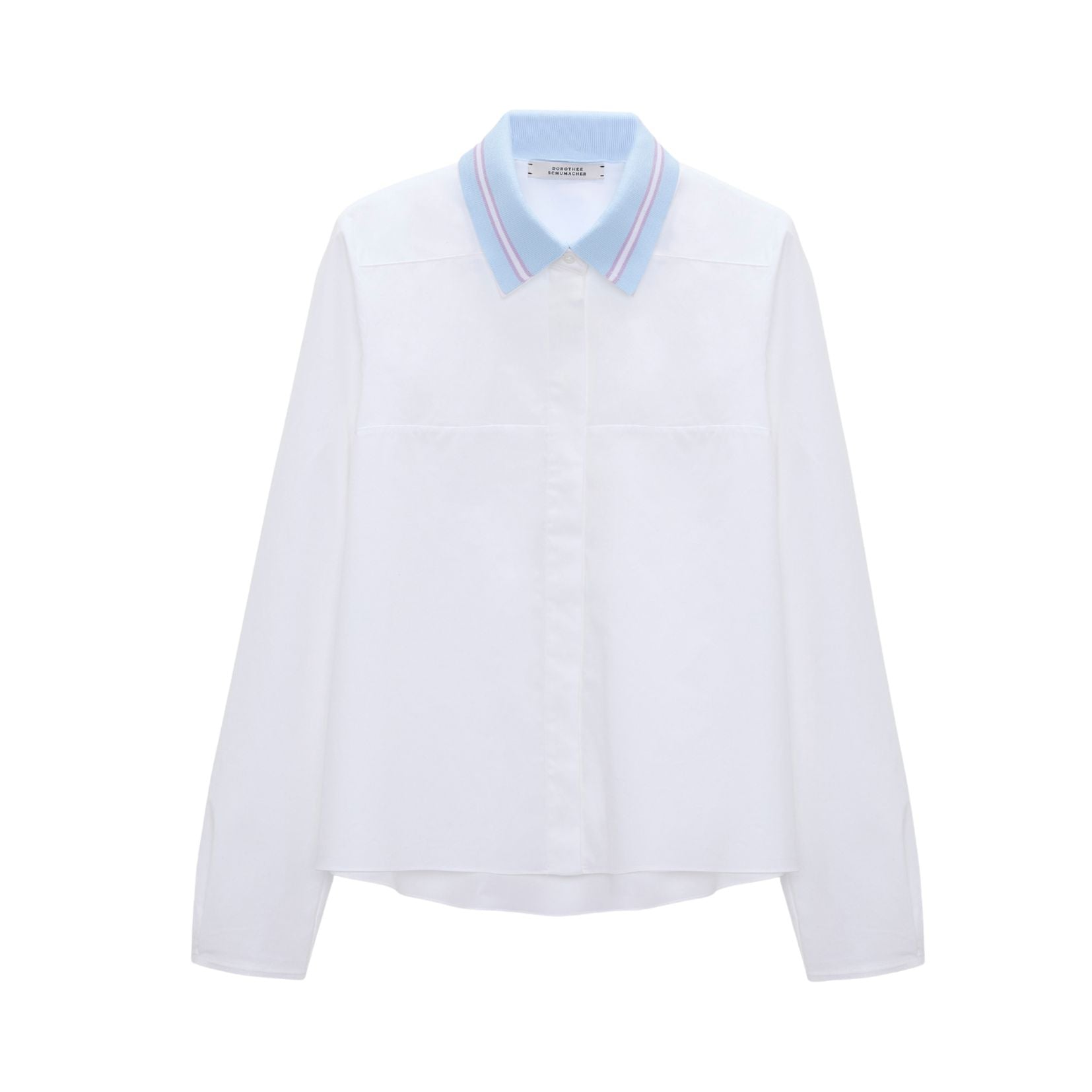 The Poplin Power Blouse is a fresh, elevated essential crafted from crisp cotton poplin in a flattering A-line silhouette. Designed with versatility in mind, it features a removable knit polo collar accented with contrast striping, allowing you to switch between polished and sporty styling. The White Sky hue keeps the look light, clean, and effortlessly refined for everyday wear.