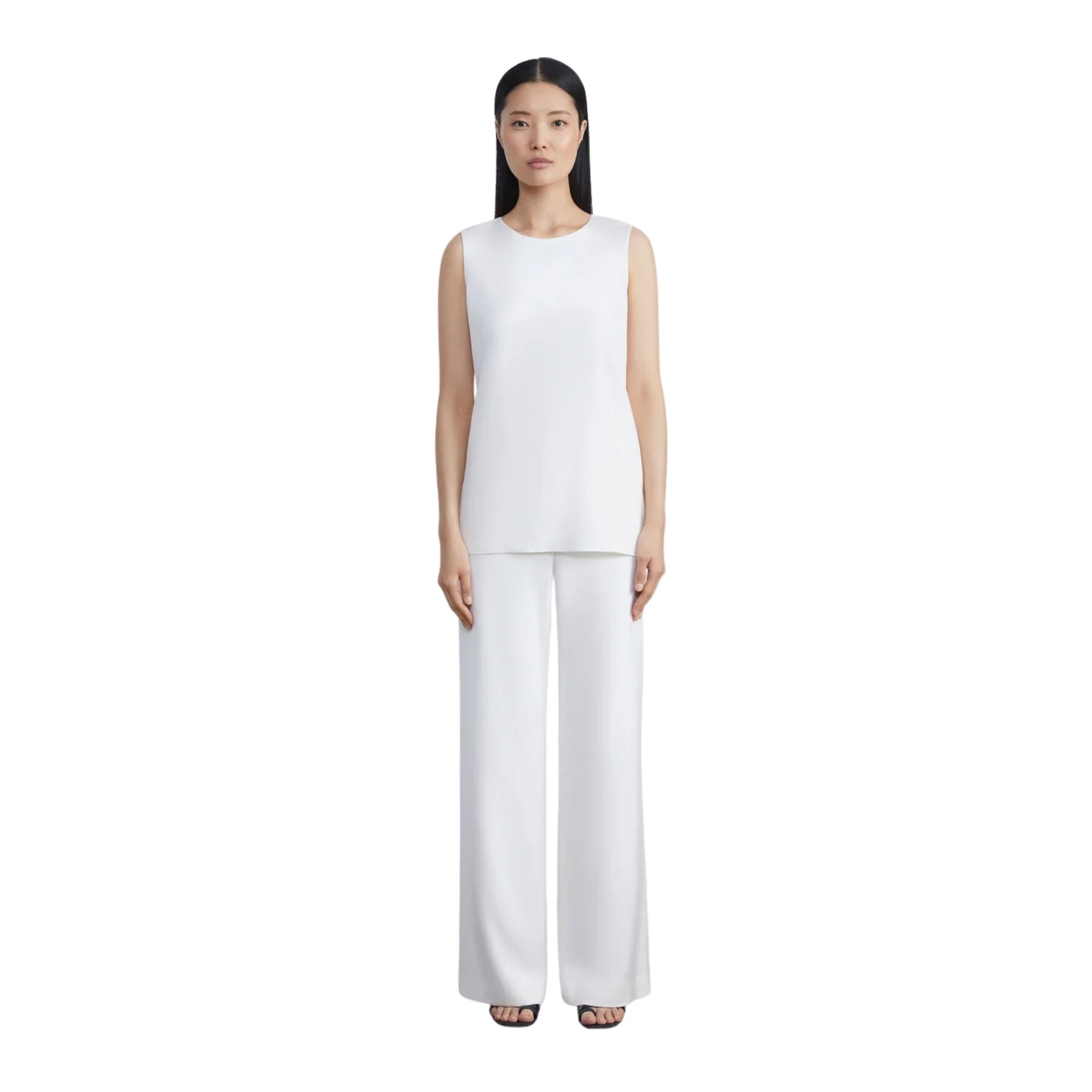 The Sleeveless Adela Blouse in Cloud brings light, versatile elegance to any wardrobe. Its soft neutral tone and fluid drape make it an effortless foundation—perfect worn alone or layered under tailored pieces for a polished, modern finish.