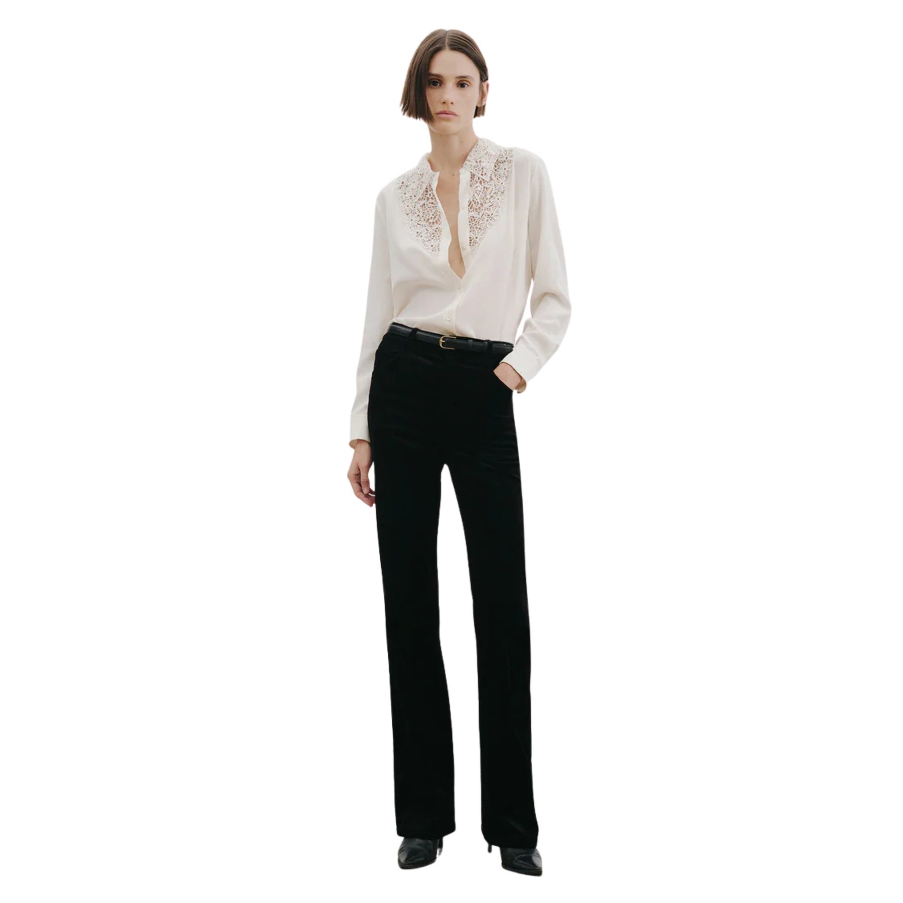 Elegant and timeless, this Nili Lotan Zola shirt is crafted from luxurious silk and elevated with a custom cotton lace insert and matching lace collar. Designed with a slim, tailored fit, it features a classic button-front placket, refined pleated cuffs, and a clean straight hem—perfect for polished daytime or evening wear.