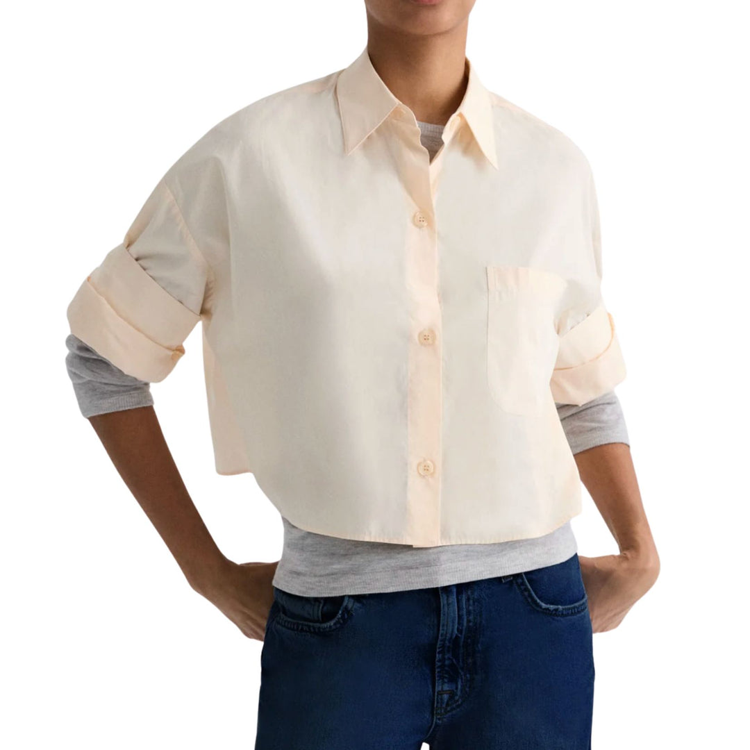 Poplin Stretch Shiny Flap Button Down Shirt in Dark Blue