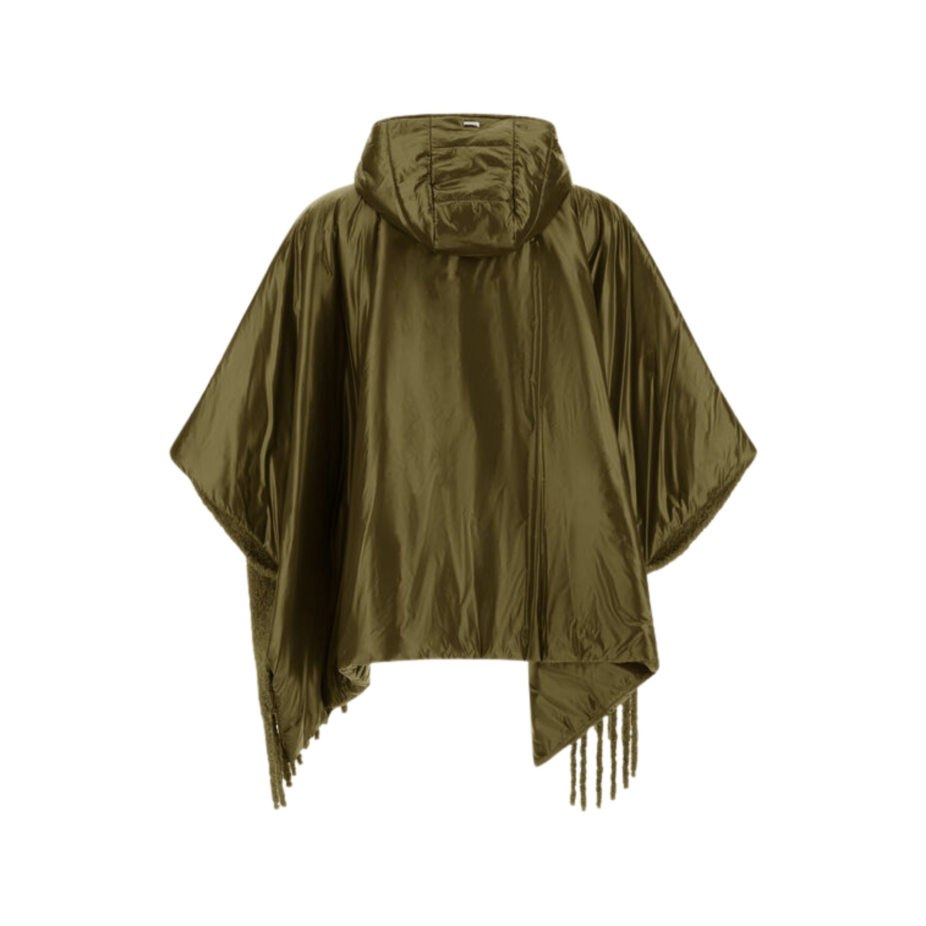 This poncho is crafted from exquisite bouclé baby alpaca yarn with long, fine fibres, garment-treated for an exceptionally soft texture. Finished with fringe detailing at the hem for added movement, it combines luxurious craftsmanship with functional design. The hood and patch pockets are made from Herno’s iconic Nylon Ultralight, a highly water-resistant fabric with a silky, lightweight feel.
