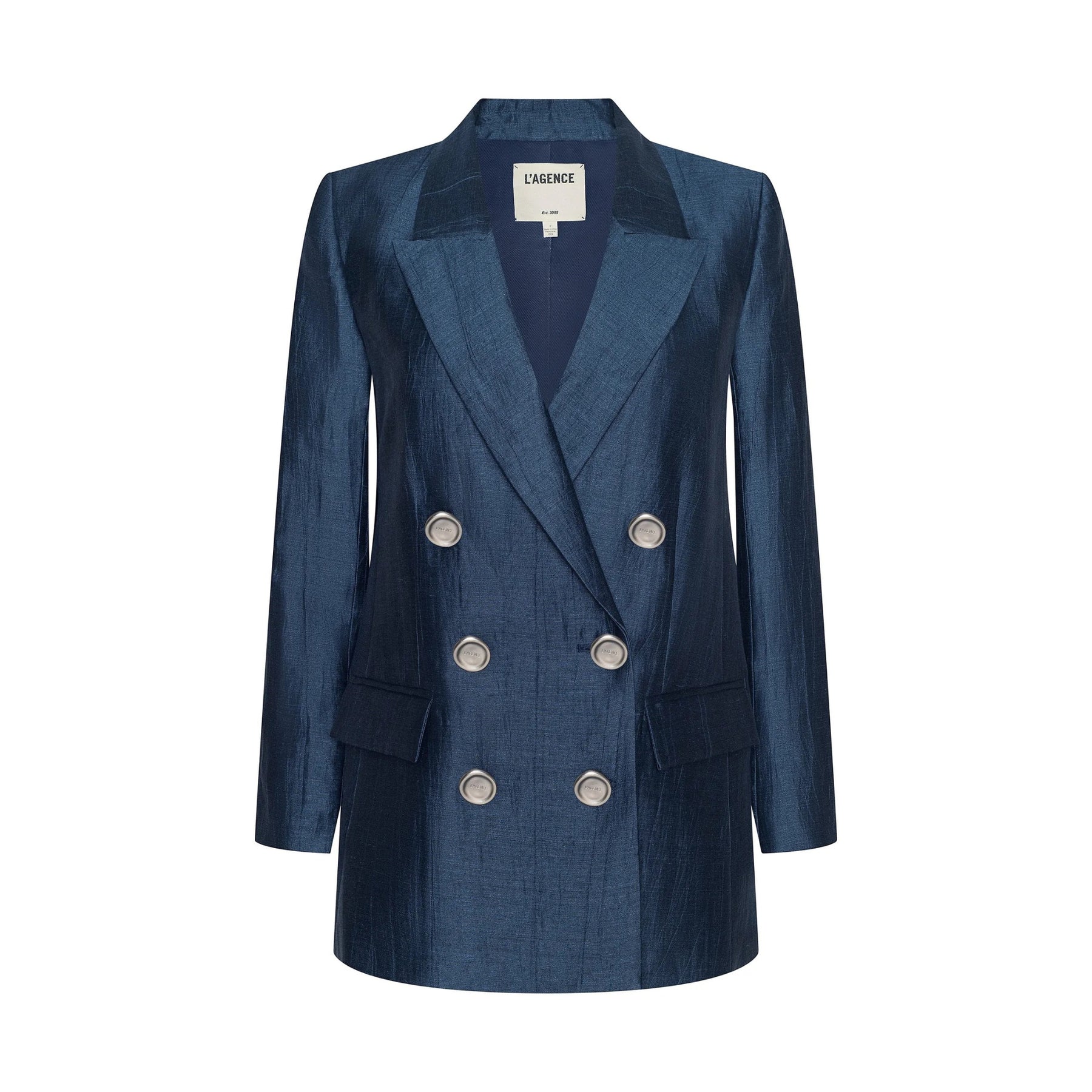 Bold and sophisticated, the Cambrie Oversized Blazer commands attention with its sharp tailoring and effortlessly oversized silhouette. Crafted from an Italian linen blend with a subtle crinkle effect, this dark blue blazer is versatile enough to pair with everything from denim to slip dresses.